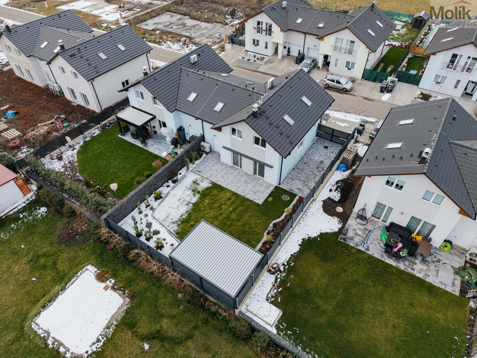 Zahrada na zakázku včetně rostlin, automatického zavlažování s časovačem a automatickou robotickou sekačkou se základnou pro dobití. Na domě je el. roleta 6x4m s proti větrovým čidlem na automatické zatažení. Kamerový systém s nočním viděním, zabezpečení od Jablotronu se sirénou a kouřový detektor. V obci je školka, základní škola, plavecký bazén, sportovní hala, fotbalové hřiště, obchody a další. Autem do Mostu a Chomutova cca 10min. Dům je nadstandardně vybaven, nutno vidět.