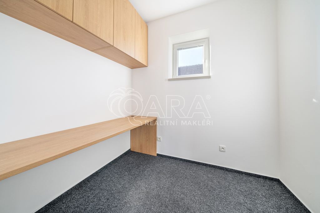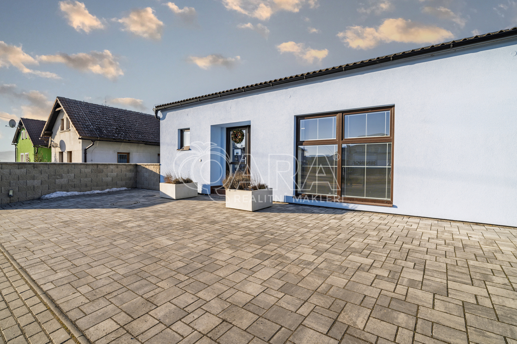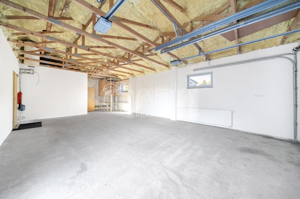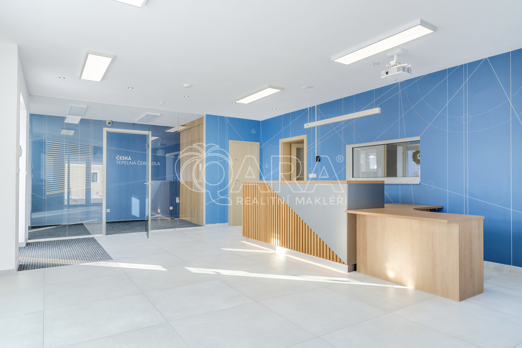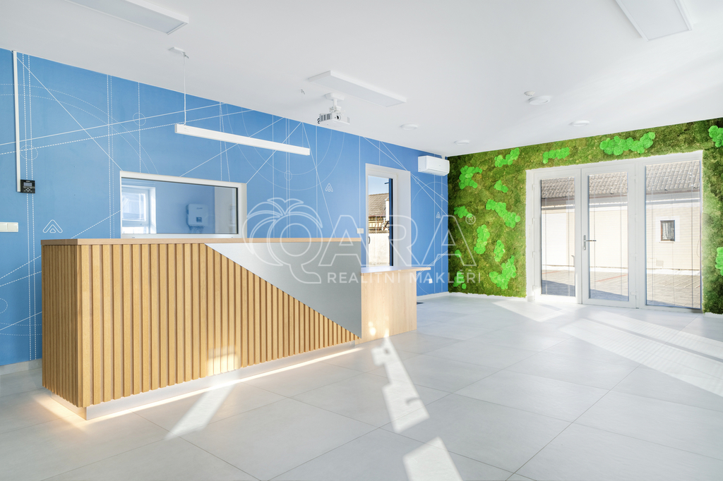Na pozemku 816 m2 najdete zateplenou budovu ve tvaru písmene U o zastavěné ploše 228 m2. Ta má užitnou plochu 187 m2 a vešla se do ní spousta místností – velká recepce se showroomem, zasedací místnost, 4 kanceláře, WC, skládek, kuchyňka, koupelna, místnost s technologiemi a sklad (téměř 60 m2) se zatepleným a vysokým stropem a 2 elektrickými vraty. Větší místnosti mají klimatizaci. Součástí prodeje je i nábytek v recepci a kuchyňce. Objekt je napojený na elektřinu, vodovodní řad a kanalizaci. Za budovou můžete grilovat a relaxovat díky zastřešenému posezení.