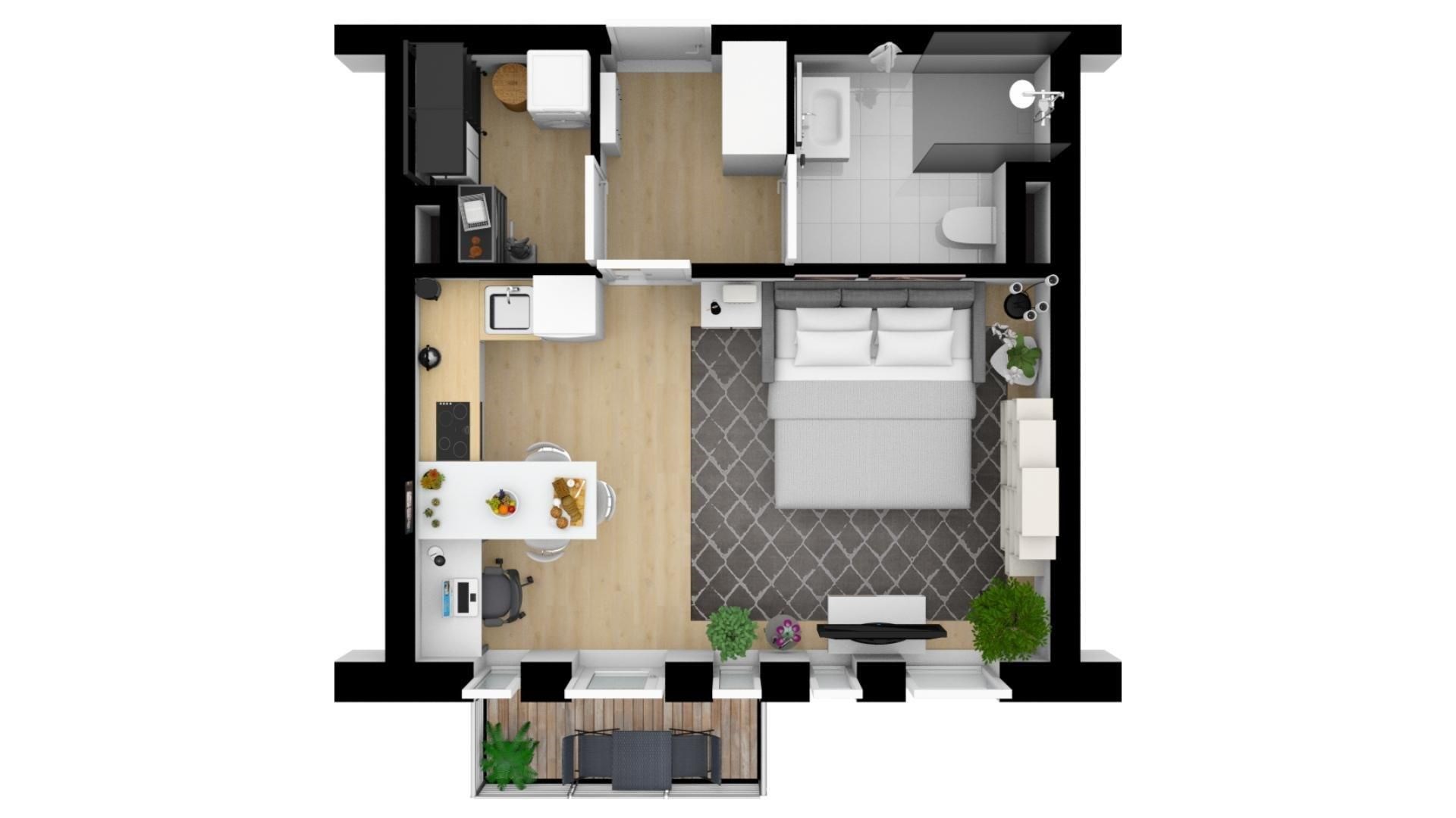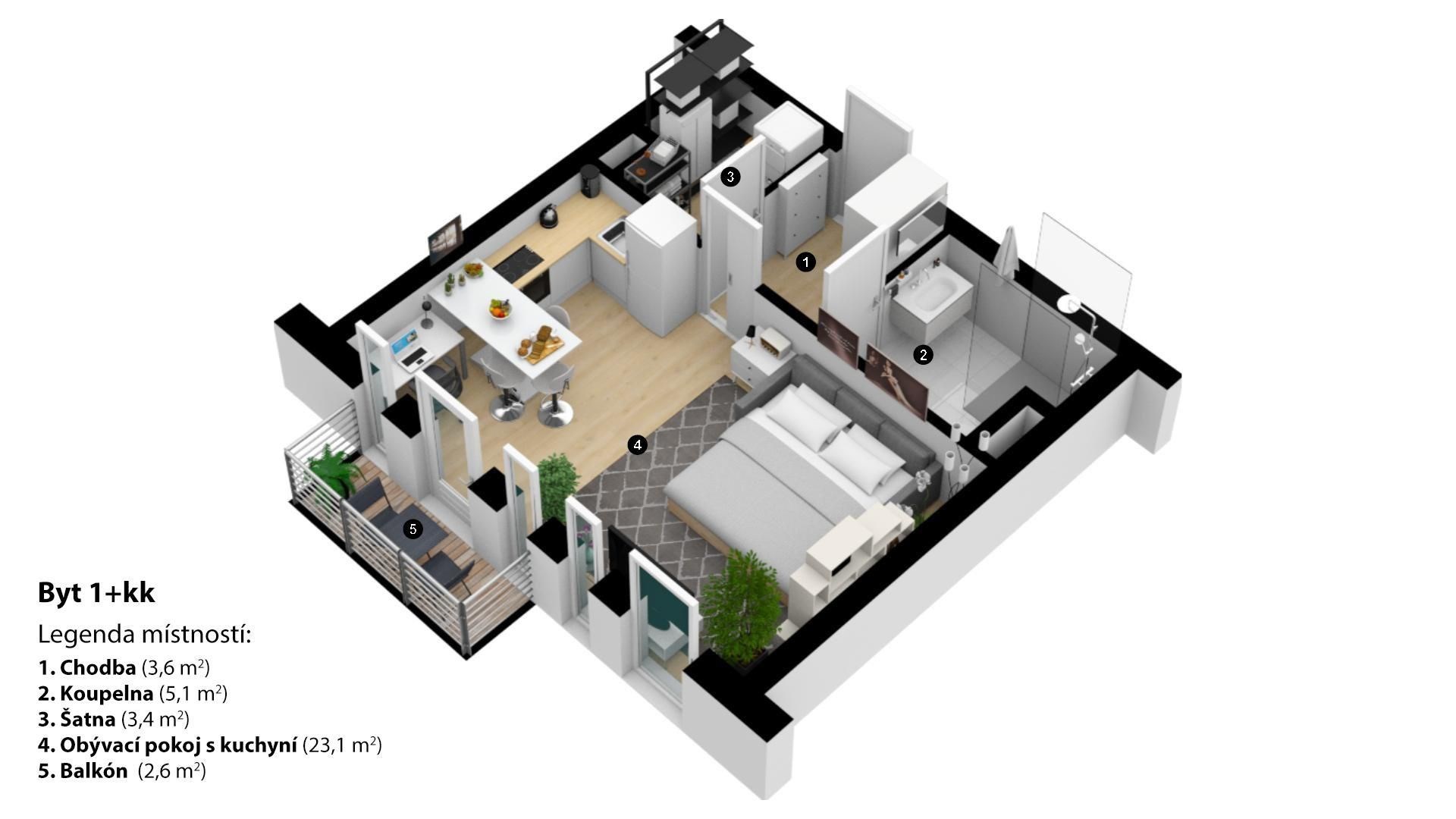 | Dispozice/podlahová plocha: | 1+kk/35 m² |