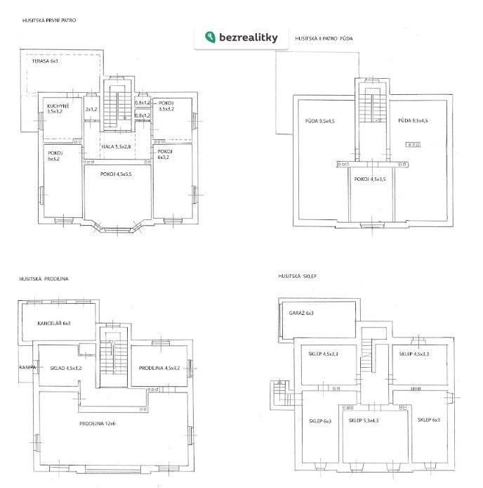 2. patro & Půda: Zde se nachází jeden obytný pokoj a dva rozsáhlé půdní prostory. Celkem cca 102 m². Ideální prostor pro vybudování podkrovního bytu.