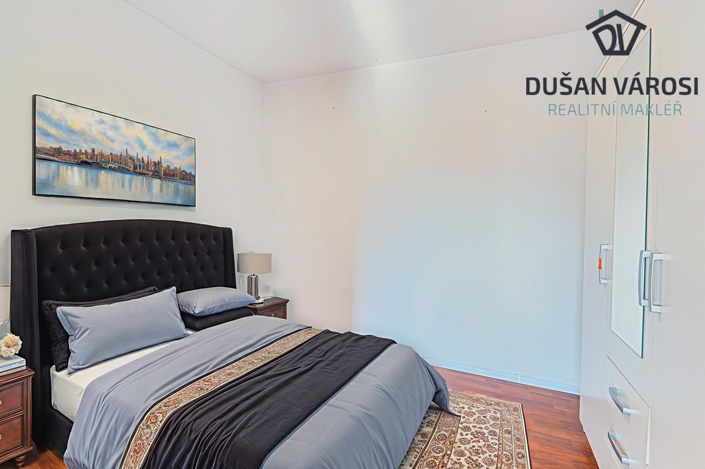 Byt je celkově v dobré kondici se zánovní kuchyňskou linkou, podhledy, závěsným wc a ledkovými světli. Velkým benefitem jsou také dvě lodžie. Na podlahách je lino a dlažba, okna jsou plastová.