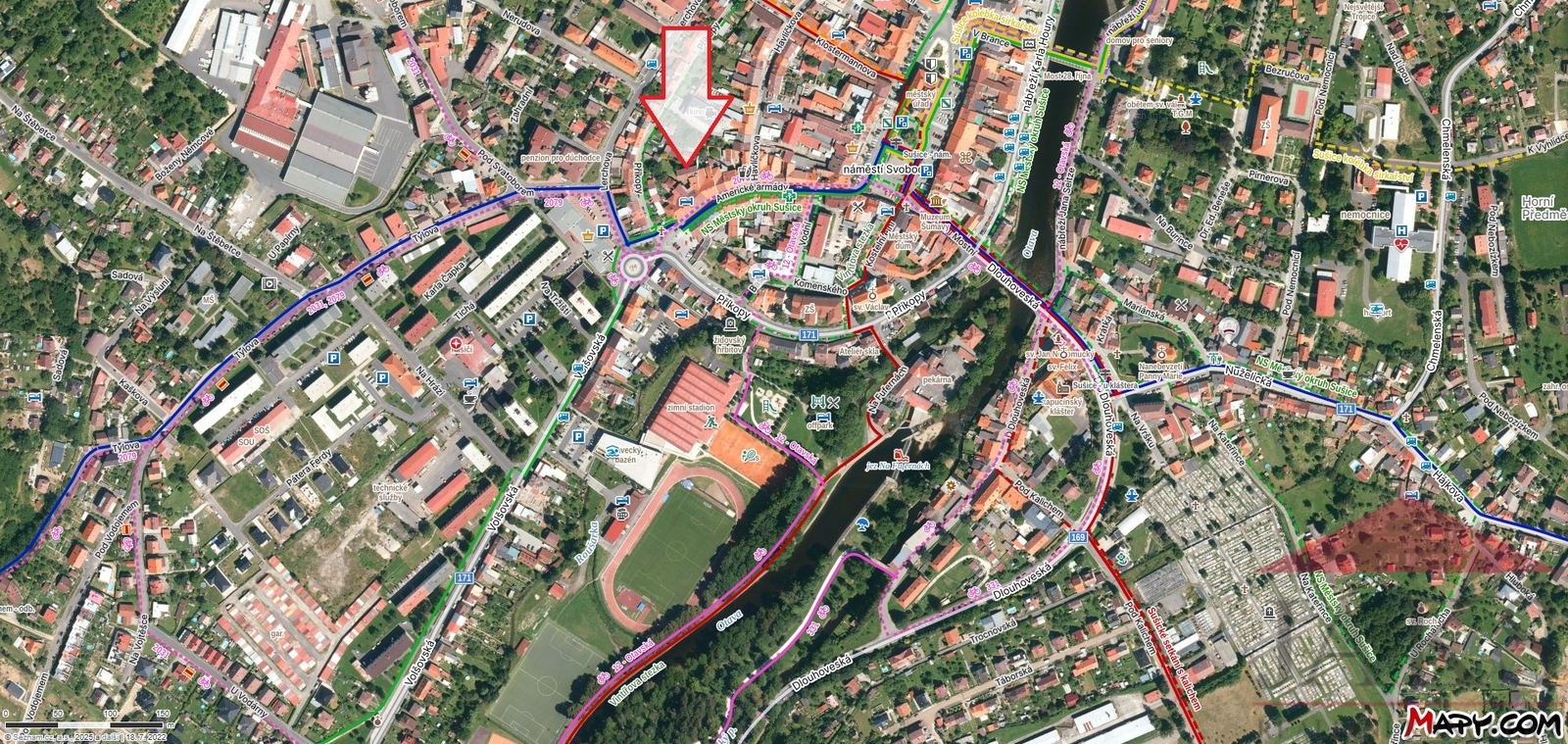 Popis: přístup skrze průjezd, společné schodiště do 2.NP: byt 3+kk/B: chodba (plynový kotel), samostatné WC, koupelna (sprchový kout, umyv. se zrcadlem a skříňkou, topný žebřík), prádelna s komorou (vývody na pračku a sušičku), prostorný obývací pokoj s kuchyňským koutem (kuch. linka s HV troubou se sklo-ker. deskou, digestoř), hlavní ložnice (palanda) a ložnice se vstupem na balkon s výhledem na horu Svatobor. Parkování na ulici nebo na blízkém parkovišti.