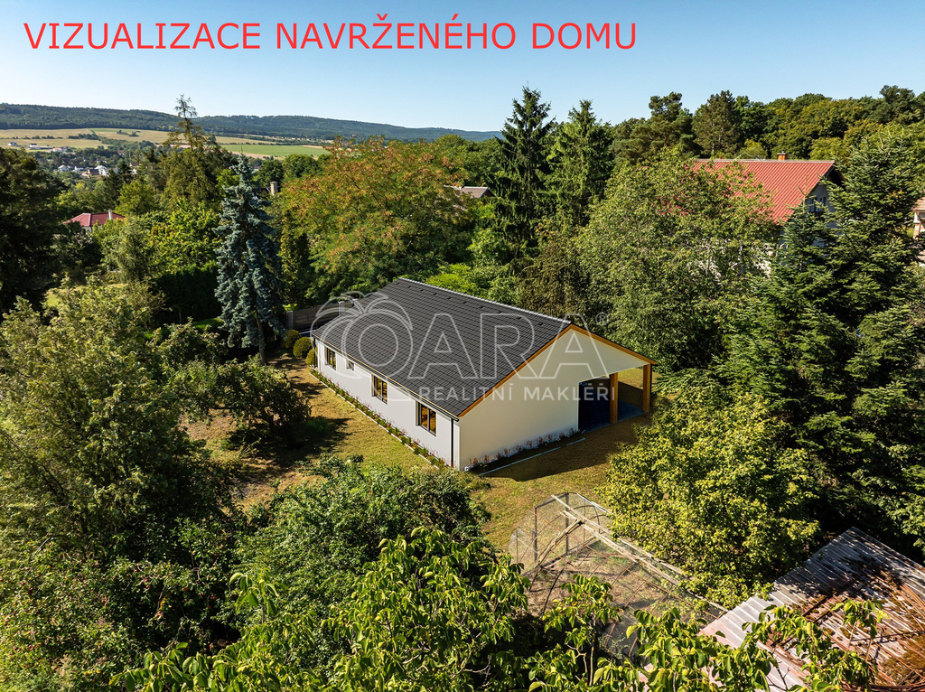 Prodej pozemku 961 m² s chatou a projektem rodinného domu (Lhotka u Svinař)