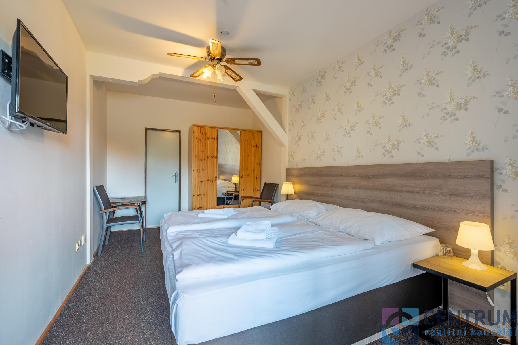 Nabízíme zavedený hotel s 22 pokoji a bytem pro správce (kapacita 60 lůžek) a restaurací, která zahrnuje plně vybavenou kuchyň, bar a salónek, sauna s odpočívárnou. Každý pokoj má vlastní sociální zařízení. V hotelu jsou velké skladovací prostory. Za domem je k dispozici parkoviště pro cca 10 vozidel a příjemné venkovní posezení.