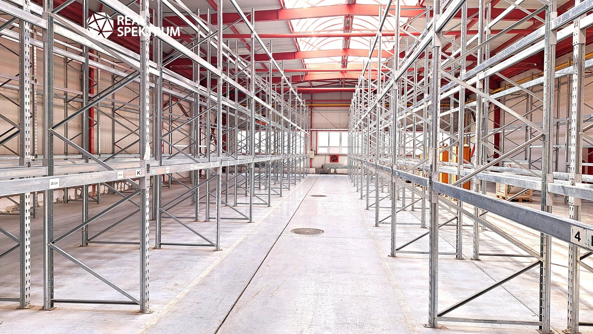 užitná plocha 2.271 m², výška 5,4 m, skladová hala , regálový systém pro cca 2000 paletových míst; 3x vrata (2x přístup přes vyrovnávací můstek na kamion, 1x přístup přes rampu); cena 1.435 Kč/ m²/rok + energie