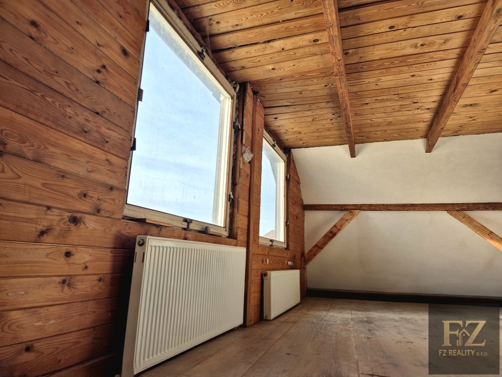 Půdní prostor je připravený k dokončení dle představ nového majitele; nabízí se možnost vybudování dalšího bytu nebo několika obytných pokojů.
