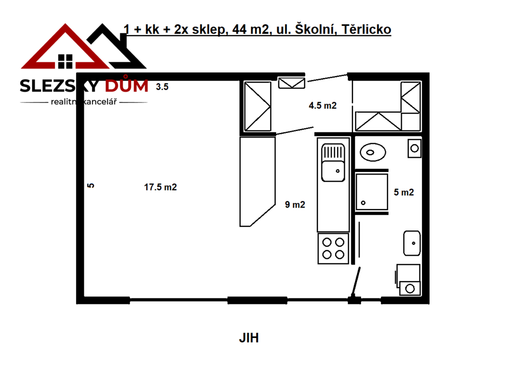 - dispozice 1+kk, výměra 44 m2 včetně 2x sklepní koje (8 m2), podlaží 2. ze 2, výtah NE, vytápění a ohřev vody přes 2x elektro kotel