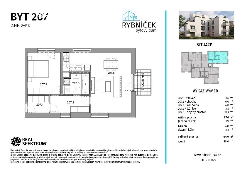 | Dispozice/podlahová plocha: | 2+kk/65 m² |