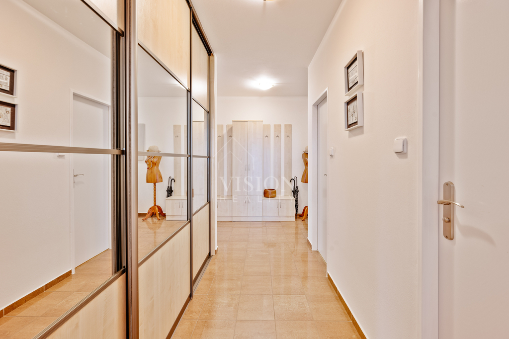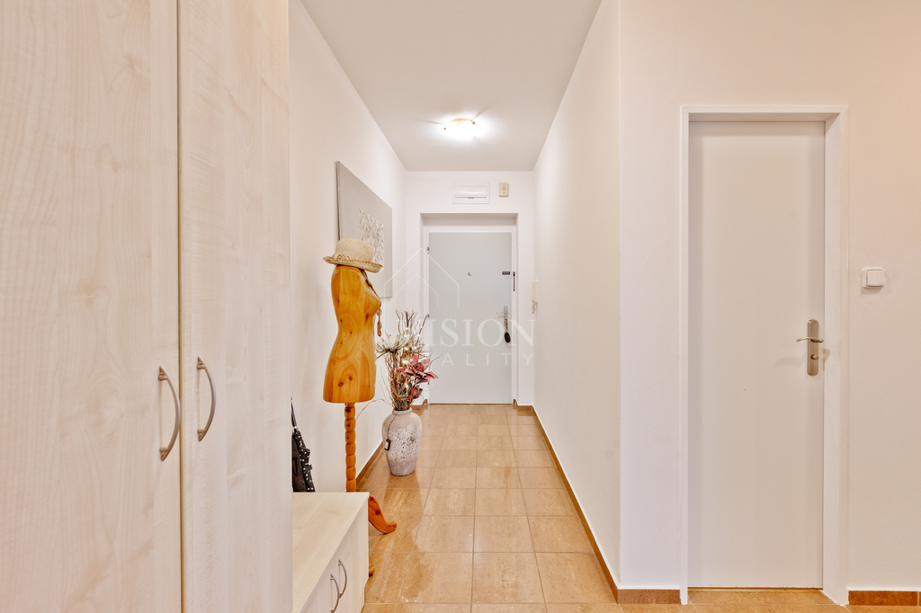 Dispozice bytu 3+kk nabízí dostatek prostoru, což jej činí ideálním pro rodinu i pro pár. Součástí vybavení bytu jsou moderní vestavěné skříně, které prakticky využívají prostor a poskytují dostatek úložného místa. Díky plynovému kondenzačnímu kotli je zajištěno efektivní vytápění, přičemž byt je napojen na veřejný vodovod a kanalizaci.