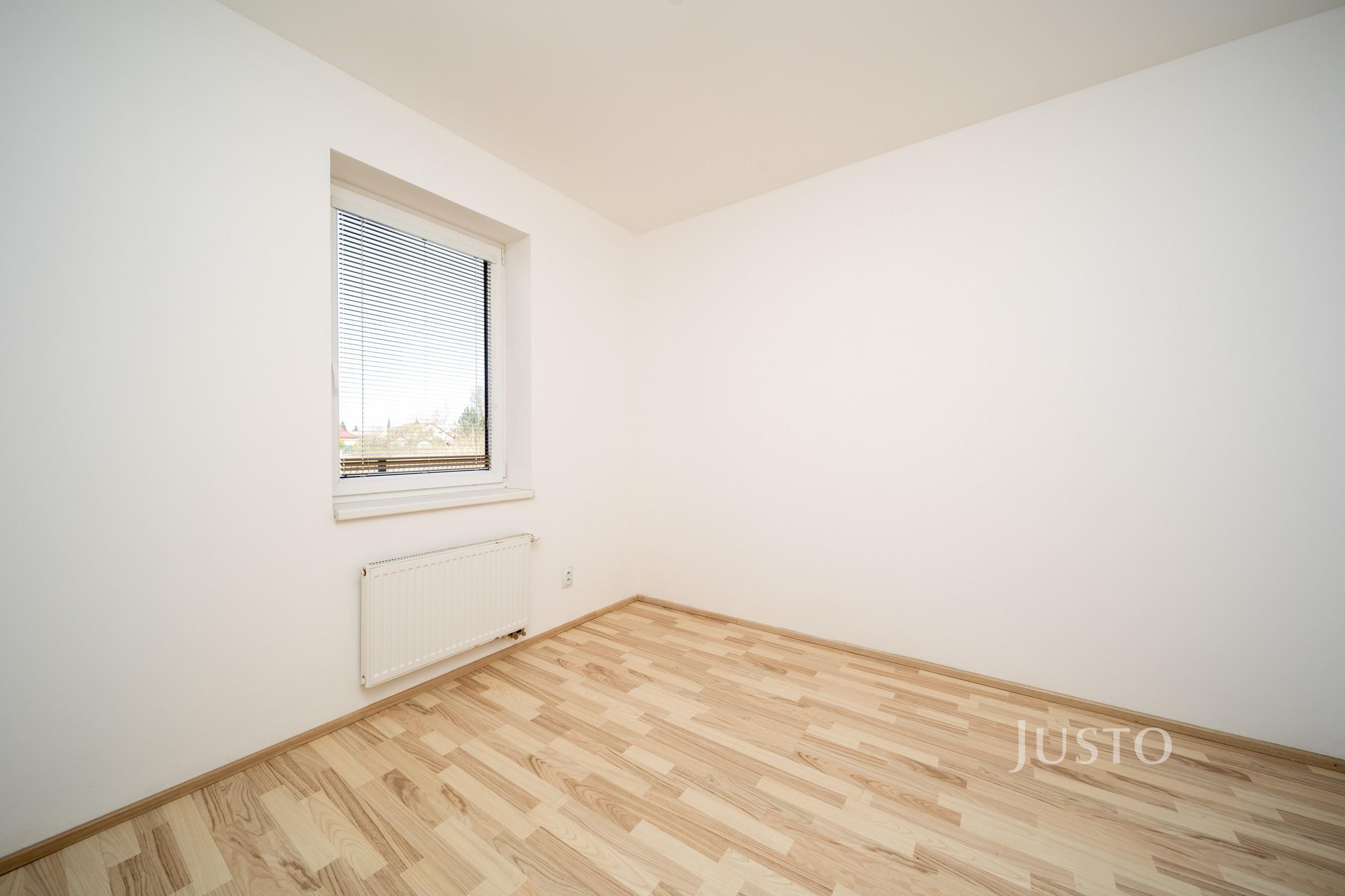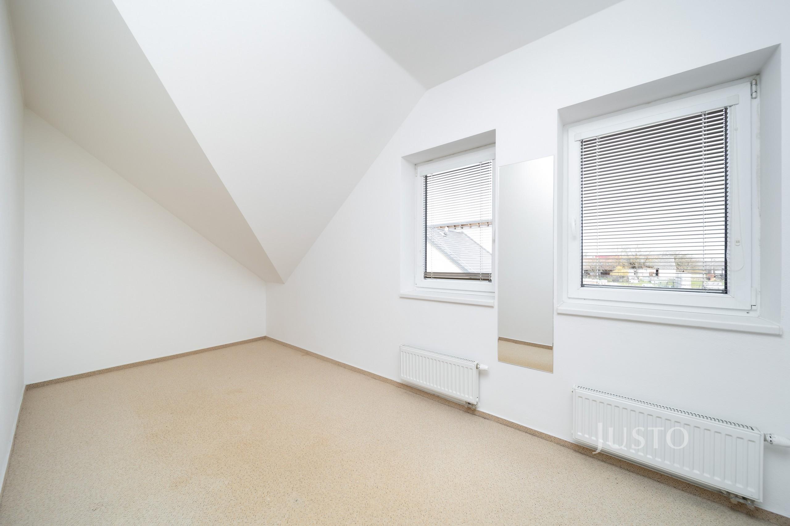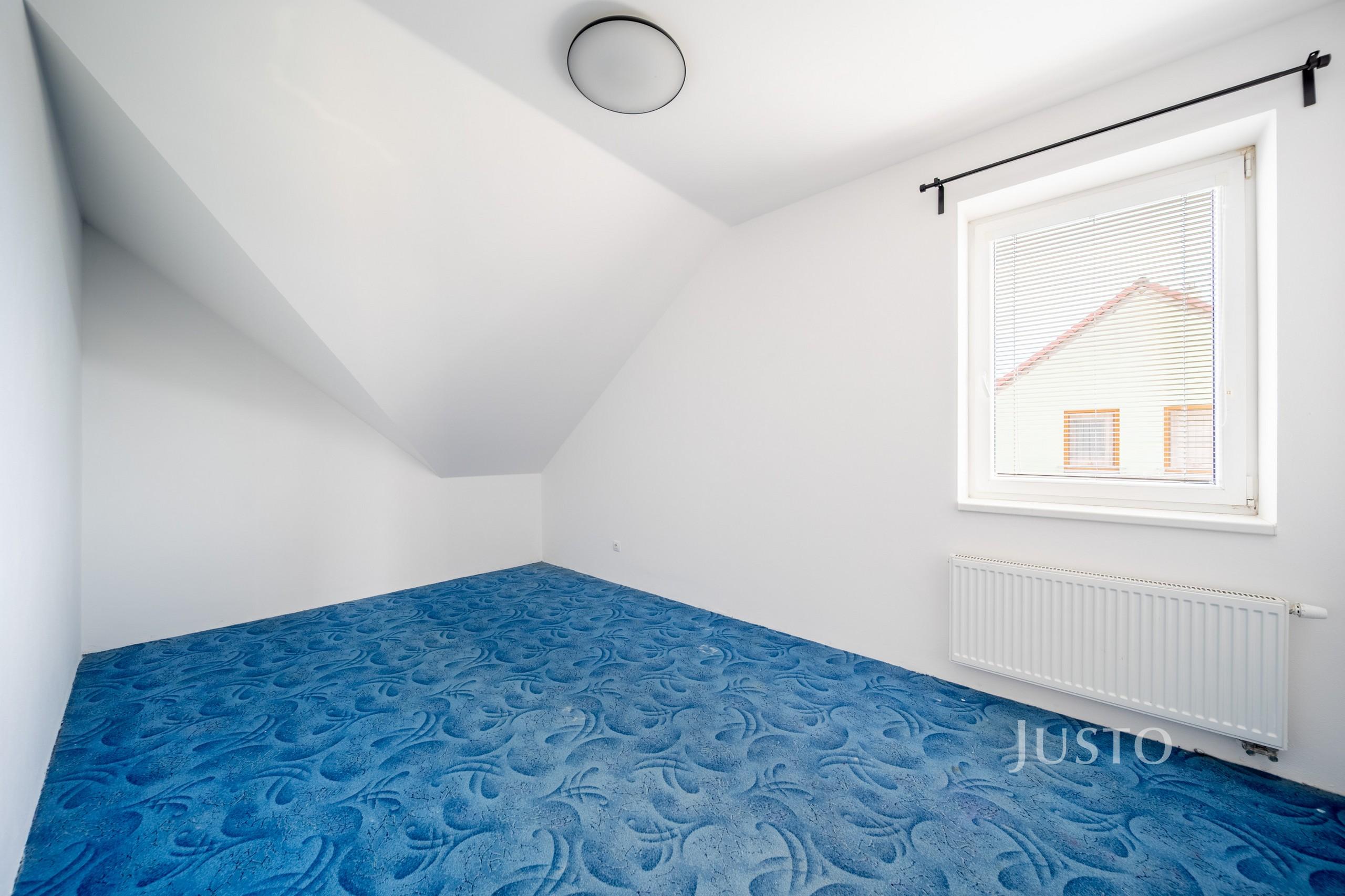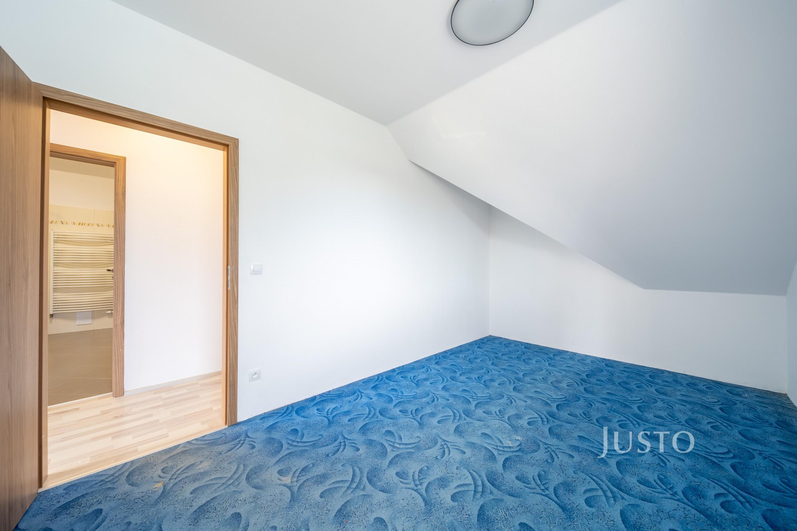 V přízemí se dále nachází samostatný pokoj (9,14 m²), který může sloužit jako dětský pokoj, pracovna nebo zázemí pro hosty. Nechybí samostatné WC (1,38 m²), technická místnost ideální pro umístění pračky a sušičky a vstupní chodba s dostatkem úložného prostoru.