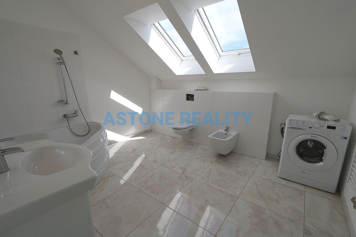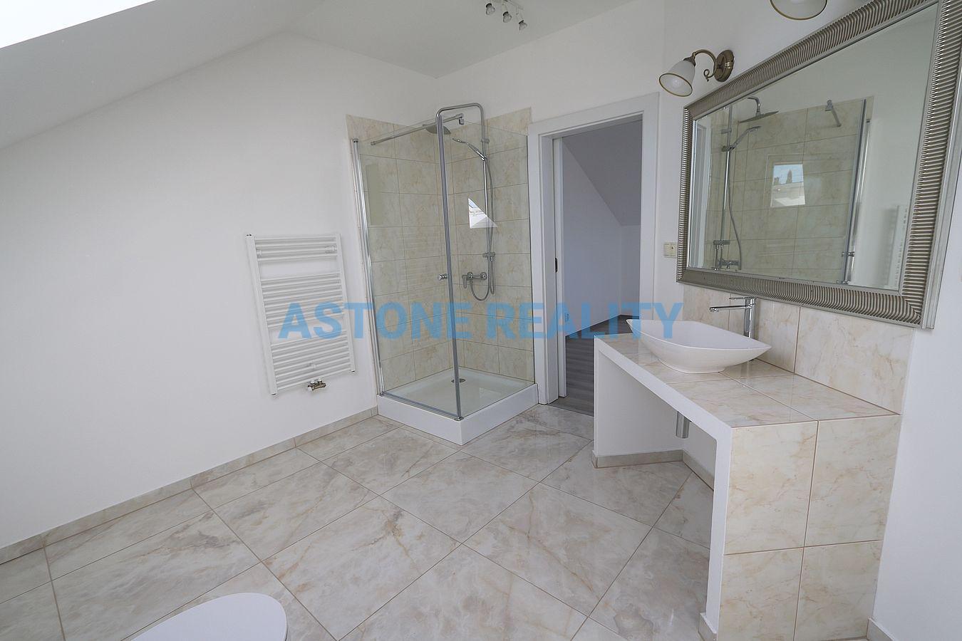 Nabízíme Vám k pronájmu krásný, dvoupodlažní rodinný dům 7+kk se třemi balkony a dvougaráží v obci Trnová, pouze několik kilometrů od Prahy. Prostorný dům s obytnou plochou 318 m2 se nachází na zcela rovném, oploceném pozemku o celkové ploše 1.674 m2. Dispoziční řešení: v přízemí je vstupní hala, kuchyně s velkým obývacím pokojem, koupelna s masážním sprchovým koutem a toaletou, ložnice a technická místnost s kotlem a vstup přímo do garáže, v prvním patře se nachází čtyři samostatné ložnice se dvěma koupelnami, jedna s rohovou vanou, druhá se sprchovým koutem, pracovna, dvě úložné komory a šatna. Plovoucí podlahy v kombinaci s velkoformátovou dlažbou, eurookna, bezpečnostní vstupní dveře. Dům je zabezpečen alarmem. Výborná dopravní dostupnost, busem 30 min na metro B Smíchov, nebo vozem po dálnici 20 min. V bezprostřední vzdálenosti je cyklostezka, restaurace, jezdecké centrum. Kompletní občanská vybavenost se nachází v nedalekém Jílovišti nebo v Měchenicích. V případě zájmu o prohlídku nás prosím kontaktujte, k dispozici ihned.