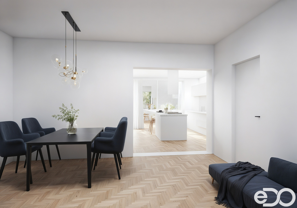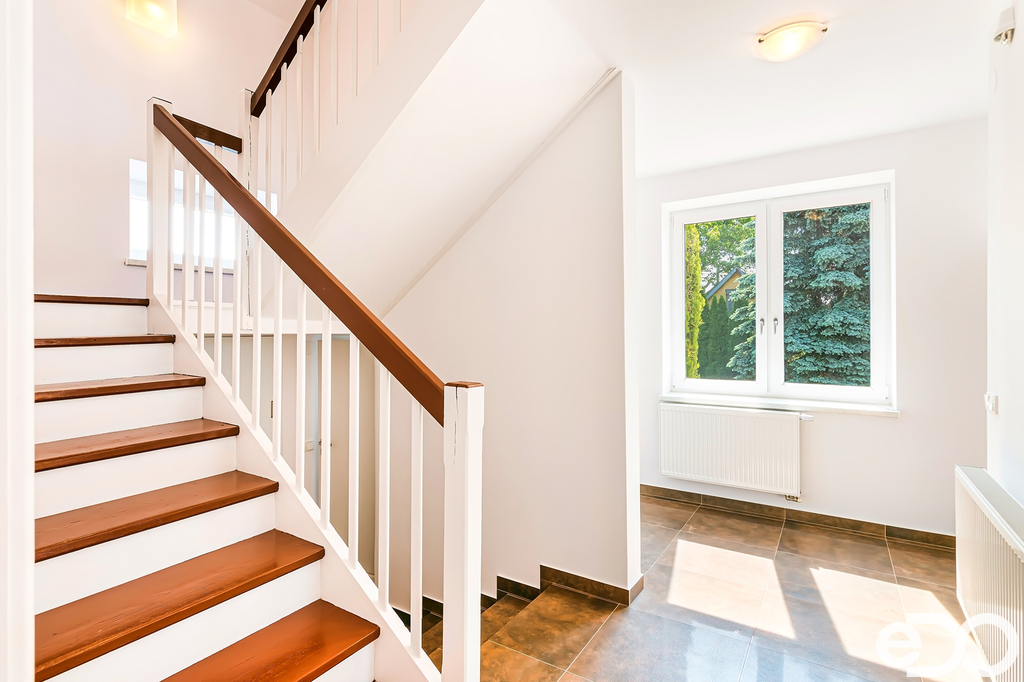 Původní schodiště a interiérové dveře včetně zárubní byly opáleny a nově natřeny.