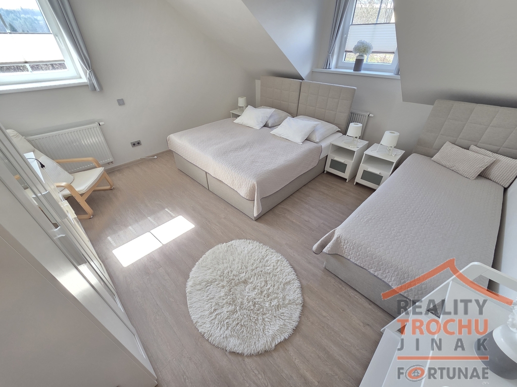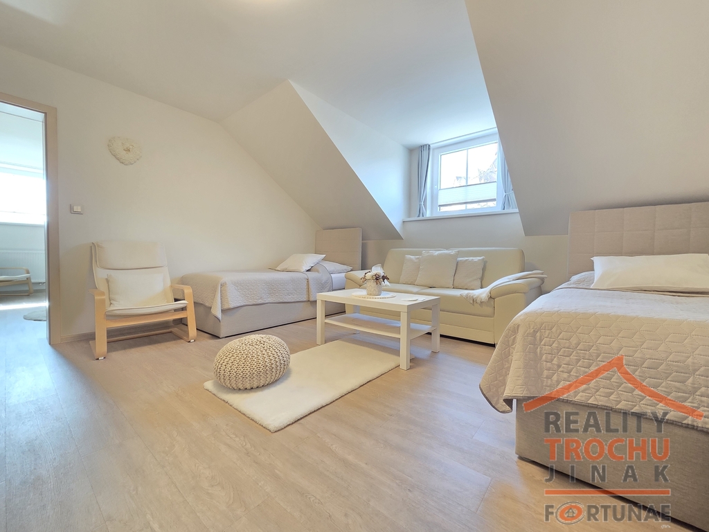Pokud Vás zajímá atraktivní a výjimečná investiční příležitost, rádi Vám představíme tento zcela ojedinělý objekt. Moderní komfort s citlivě propracovanými detaily, kde lze vnímat velmi vkusnou, kvalitní a materiály dokonale sladěnou celkovou rekonstrukci, která je právě v tomto apartmánovém domě, Vám rádi ukážeme. Osm apartmánů/bytů se nachází v třípodlažním objektu. Součástí domu je výtah, kolárna, parkoviště s 8 parkovacími místy a prostorná zahrada 690 m2 s altánem, vířivkou a napojením na sítě pro možné další využití pozemku zahrady. Původní historický objekt prošel kompletní rekonstrukcí, která byla realizována v jednotlivých etapách, kde k úplnému dokončení prací došlo v srpnu 2025. Tento kouzelný dům se prodává kompletně vybavený a je zcela bez nutnosti dalších investic, kde i toto je velkou předností nemovitosti. Celková užitná plocha domu je 715 m² na pozemku 1494 m², kde lze vystavět případně ještě další objekt. Tento nadstandardní bytový dům může ihned generovat příjem z podnikání. Apartmány jsou řádně povoleny stavebním úřadem jako bytové jednotky. Byty 2+kk 42 m2, 2+kk 49 m2, 2+kk 60 m2, 1+kk 35 m2, 2 x 2+kk 75 m2, 2+kk 125 m2 a 2+1 100 m2 (dva byty mají své terasy za domem) mají samostatná měření energií v technickém zázemí. V domě je 40 lůžek. Vytápění a ohřev vody je řešen dálkově z elektrárny Poříčí. Dům má štítek energetické třídy C, což znamená vyváženou spotřebu energie. Je napojen na vodovodní řád a má kamerový systém. V okolí bytového domu nedochází k emisím od sousedních pozemků, k žádnému znečišťování půdy, ovzduší, vody. Od roku 2020 je objekt úspěšně provozován jako nemovitost pro krátkodobé pronájmy, což z něho činí zajímavou investiční příležitost s možností plynule navázat na zaběhnutý funkční koncept apartmánového domu Sklípek. Apartmány v přízemí se samostatným přístupem jsou vhodné i pro jiné druhy podnikání, např. ordinace lékaře, kde je k dispozici 2x sociální zařízení, prostor vhodný pro čekárnu pacientů, wellness studio, kadeřnický salón se soláriem, atd. Vhodné i k prodeji po bytových jednotkách ke zvýšení výnosu této investice. Lokalita má vysokou návštěvnost a stabilní poptávku po ubytování. Vzhledem k atraktivní lokalitě s dohlednou skvělou dopravní dostupností díky intenzivně probíhající výstavbě dálnice D11, je zde celoroční turistická poptávka, mj. velmi často ze zahraničí. Nechybí poptávka po firemním ubytování. Objekt je v těsné blízkosti Krkonoš a kouzelné skalní oblasti Adršpašska a Broumovska. Milovníci horských kol mají kousek od apartmánů vlastní ráj - Trutnov trails. Loděnice nedaleko. V zimě jsou nejbližší sjezdovky pouhé 4 km od objektu. Ski areál Prkenný důl 16 km, Mladé buky 13 km. Pokud hledáte stabilní investici s velmi atraktivním výnosem, kde lze počítat s návratností do cca 12 let, tak nás kontaktujte a my Vás společně s majiteli rádi provedeme. Doporučujeme; financování zajistíme.