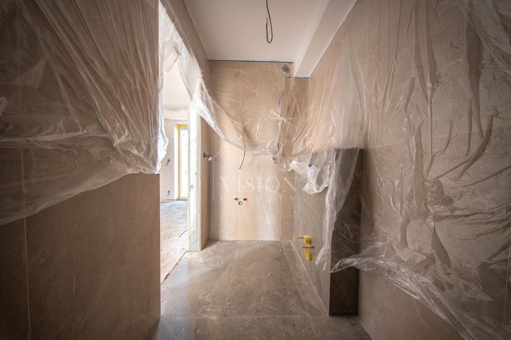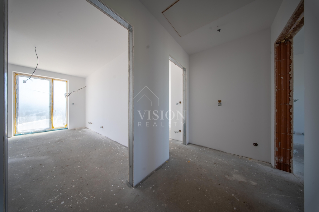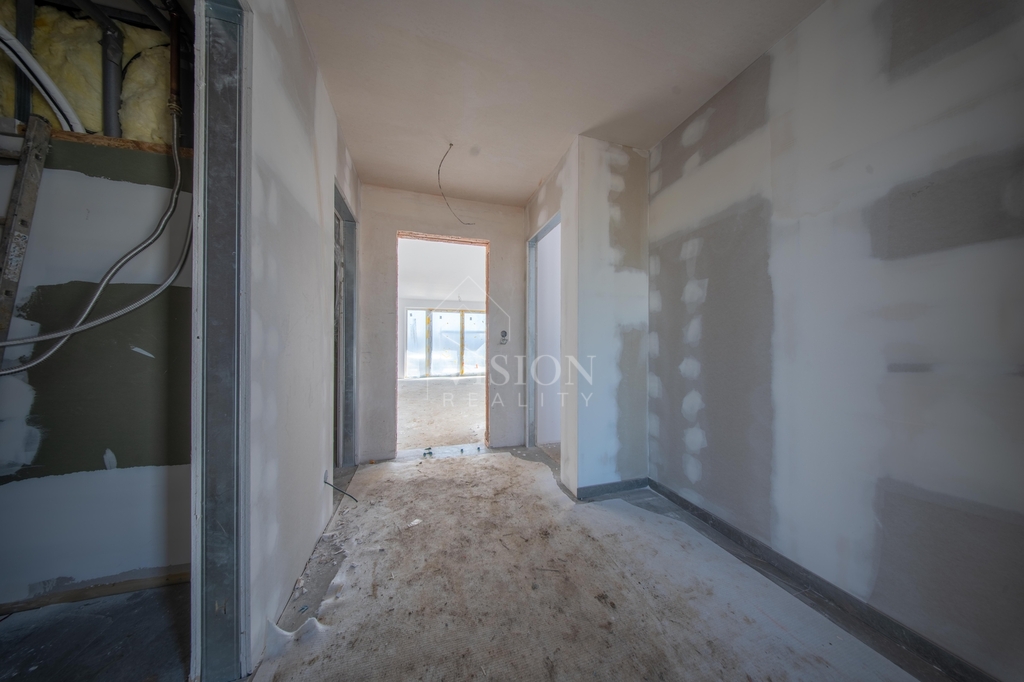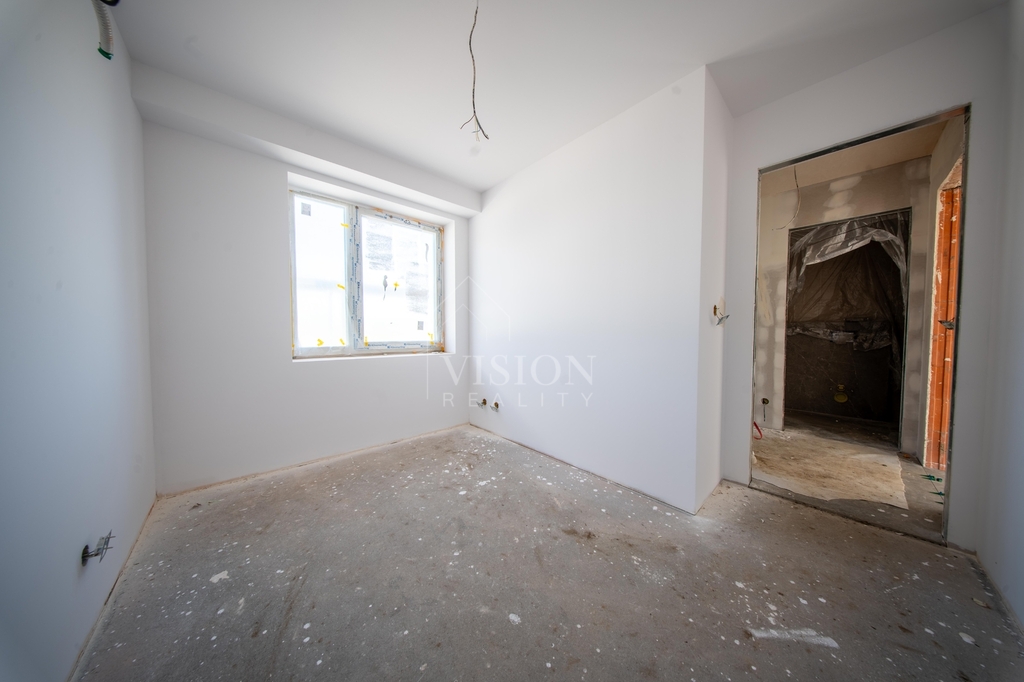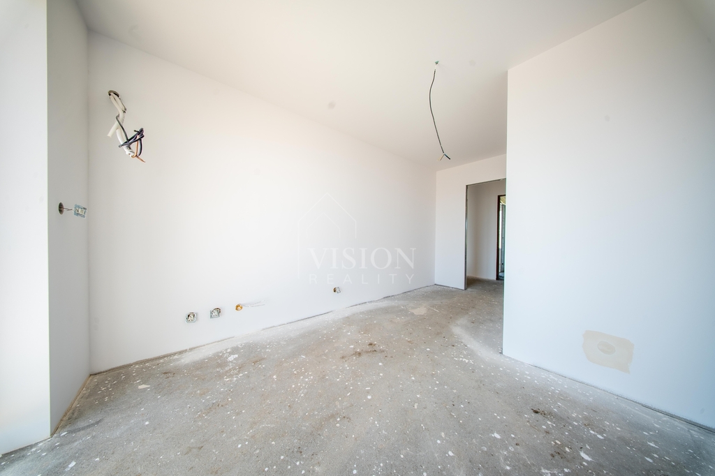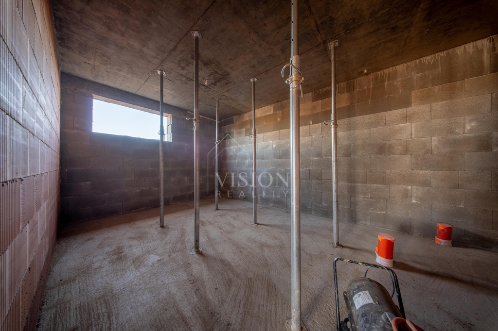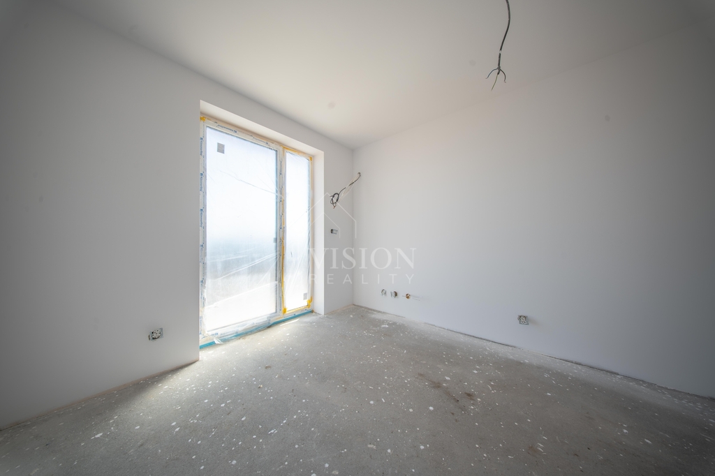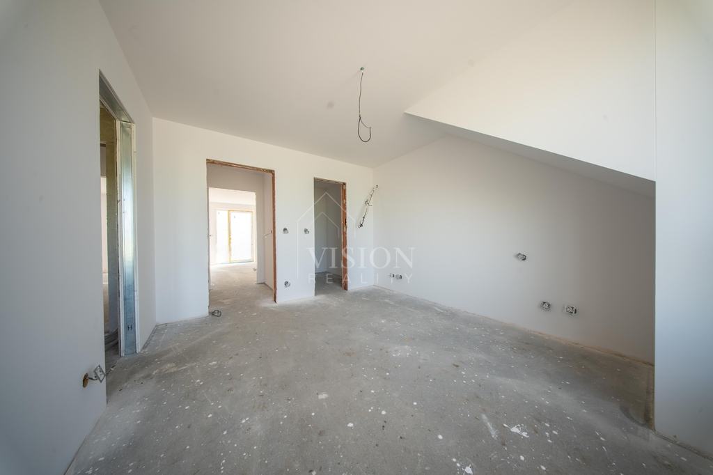 V prvním nadzemním podlaží je taktéž velký obývací prostor s kuchyní z něhož je přímý vstup na balkon. Dále je zde pracovna, samostatná toaleta a technická místnost.