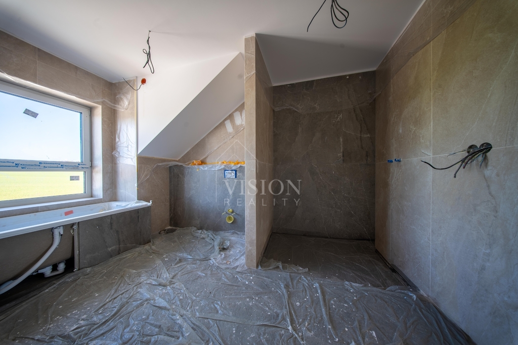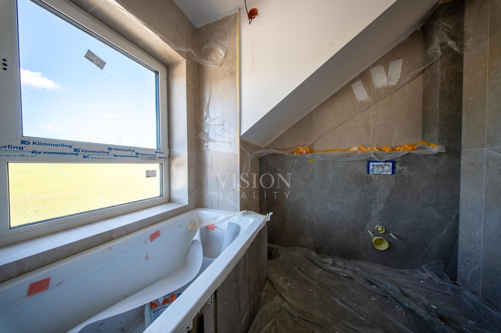 V druhém nadzemním podlaží se nachází ložnice, dva pokoje ze kterých je přístup na lodžii, koupelna a prostorná šatna.