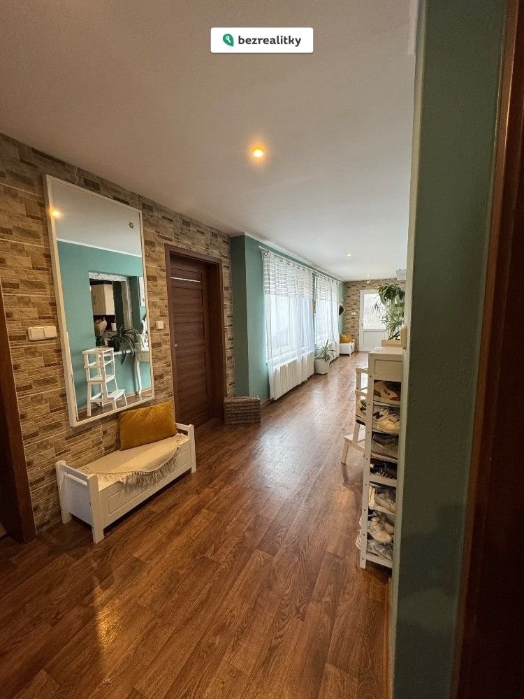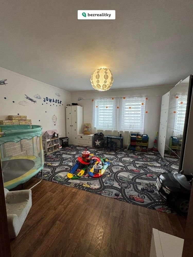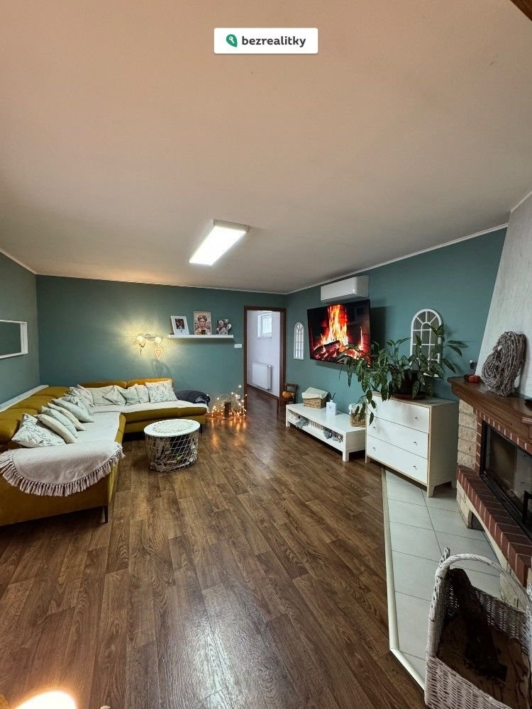 Vnitřní prostory domu jsou bezbariérové. Obytným centrem je kuchyně vybavená velkou kuchyňskou linkou se spotřebiči, která je propojená s obývacím pokojem a prostornou chodbou, využívanou i jako rozšíření hracího prostoru pro děti. Obývacímu pokoji dominuje velký, zděný krb, který v chladných měsících nejen vytopí celý dům, ale zajistí útulnou a romantickou atmosféru vašeho domova. Na uvedené prostory navazují další 3 neprůchozí pokoje, které jsou v současné době využívány jako ložnice rodičů, dětský pokoj a herna pro děti. Sociální zázemí tvoří prostorná koupelna s vanou i sprchovým koutem a dostatečným místem pro umístění pračky a sušičky. WC je samostatné. Bonusem je také technická místnost, kde je umístěn plynový kotel a je zde místo pro uložení sezónních věcí nebo může sloužit jako spíž.