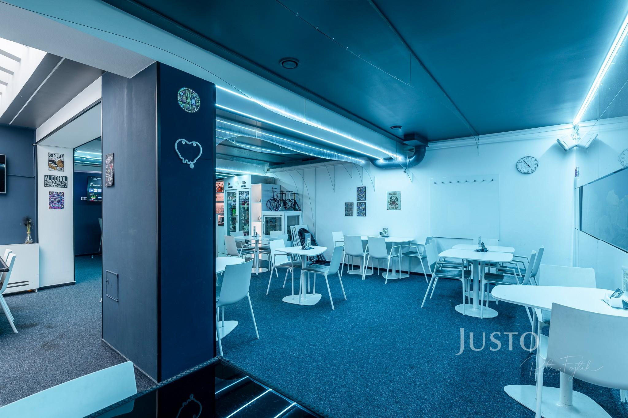 ✅V ceně pronájmu je veškeré pevné vybavení baru, stoly a židle, barové stoličky, regály, 1 ks televize a barevné osvětlení v různých barevných modifikacích.