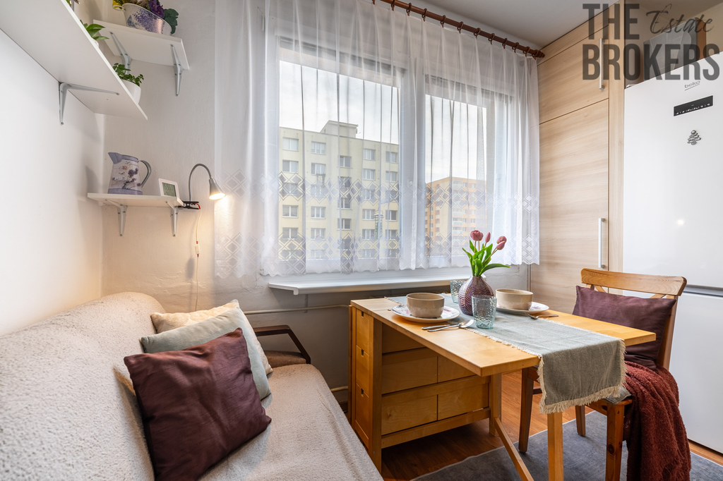 Samotný byt vás mile překvapí svou promyšlenou dispozicí. Hlavní obytná místnost slouží v současné době jako obývací pokoj i ložnice – útulné místo, kde můžete odpočívat po náročném dni a vychutnat si klid domova. Druhá místnost je řešena jako jídelna s kuchyňským koutem, což nabízí nejen prostor pro přípravu chutných pokrmů, ale i pohodlné stolování. Tento koncept zajišťuje, že byt působí vzdušně a přitom plně funkčně. K tomu se přidává balkon, ideální pro ranní kávu, odpolední čtení nebo posezení při západu slunce nebo jen sušení prádla. Sklep pak poskytne dostatek úložného prostoru pro sezónní věci či sportovní vybavení.
