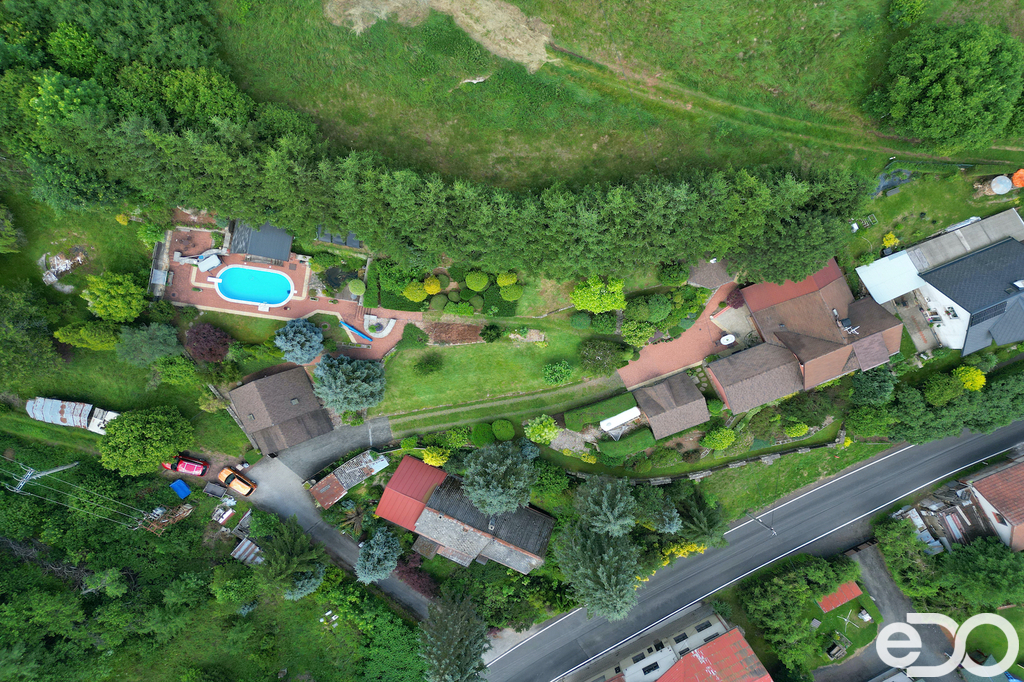 V exkluzivním zastoupení nabízím k prodeji rodinný dům umístěný v intravilánu obce Radeč nedaleko města Úpice. Ač se dům nachází nedaleko hlavní silnice, jeví se jako oáza klidu a pohody. Dům postaven ze základního stavebního materiálu a tím je kámen. Pevný, jistý a všestranný kámen vévodí v této nemovitosti obložením stavby. Stavba na bydlení a členitá zahrada-opečována pečlivou majitelkou. Vstupujeme branou na dálkové ovládání na příjezdové cestě, která vede do kopce až k obytné části domu. U kované brány je dvojitá garáž taktéž na dálkové ovládání - z toho vyplývá, že v zimním období není váš automobil pod obyčejným přístřeškem ale v teplotním komfortu. Travnaté plochy jsou pravidelně sekány a spojují několik odpočinkových a relaxačních zón. V pravo, cestou vedoucí za dům se nachází dřevník, sklad a plynová nádrž, která je jistotou nízkých nákladů na dům v zimním období. Na straně levé najdeme chodníky vedoucí k nejoblíbenější části celé nemovitosti-bazénu o hloubce 1.6m a délce 4m se stavbou pro pozvané hosty, kteří tu mohou i přespat. Dominantou této části je krásné jezírko s rybičkami. Vrátíme-li se od bazénu zpět k domu, potkáte cestou záhonky, tuje, smrkový porost, udírnu a dalším napojovacím chodníčkem se dostanete k luxusní pergole pro 10-20osob. Opačným směrem od bazénu se dostanete k dílně, která je obložená OSB deskami, skladem pro různá nářadí, která potřebujete nezbytně k udržování zahrady, bazénu a nakonec i domu. Hlavní budova kde jsou nejvíce obývané části a to kuchyně s podlahovým topením, obývací pokoj s velkou knihovnou a s krásným historický kachlovým krbem. Okna oblouková, dřevěné trámy na stropě, kovaný lustr jasně prozradí, že stojí za to tuto nemovitost vidět osobně! Z obývacího pokoje se dostanete na chodbu v nichž najdete koupelnu, masážní sprchový kout, záchod a úložný prostor. Po dřevěných schodech do patra najdete další 3 pokoje s krásnými výhledy do okolí! Toaletu a kancelář. Pokud vás nemovitost zaujala, zavolejte, myslím že na trhu se dlouho neohřeje!