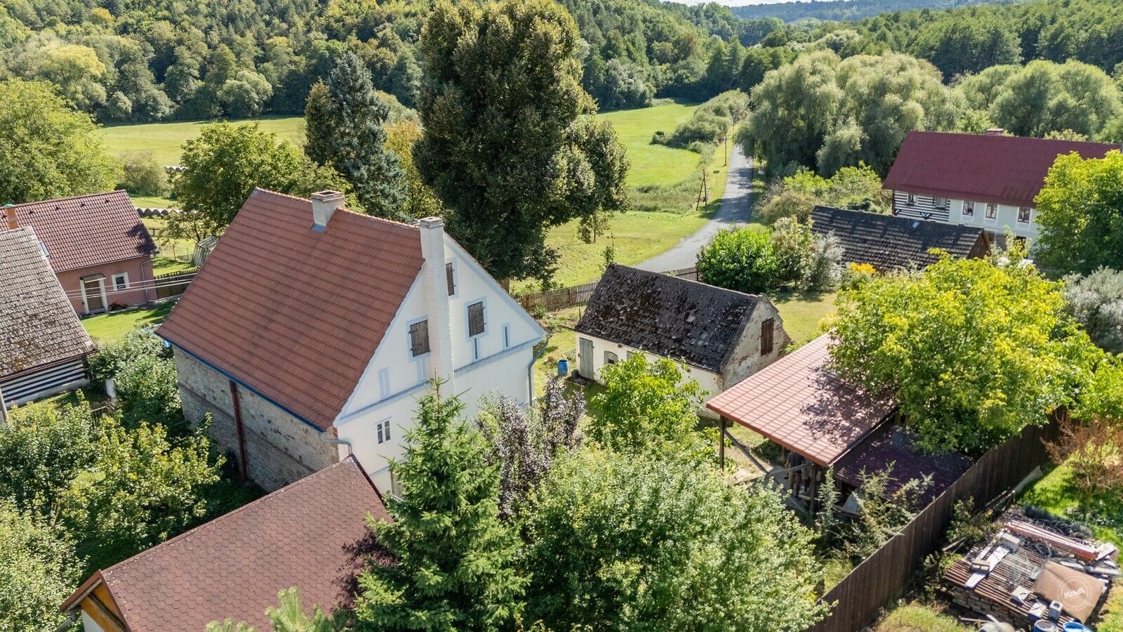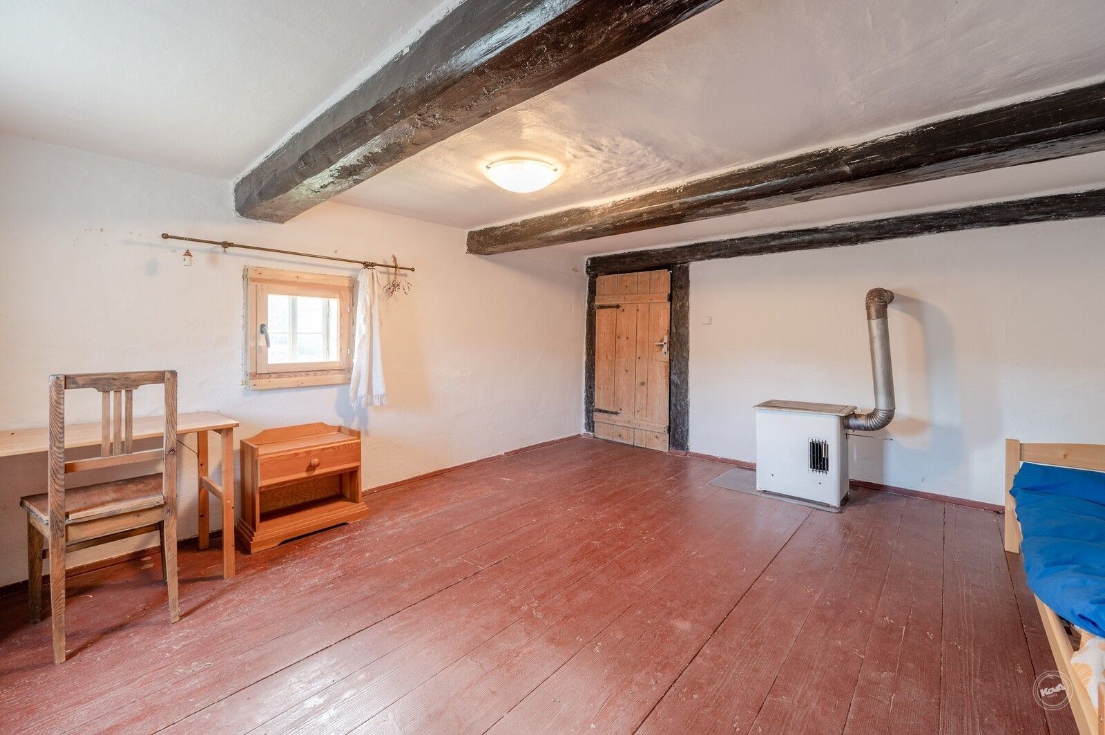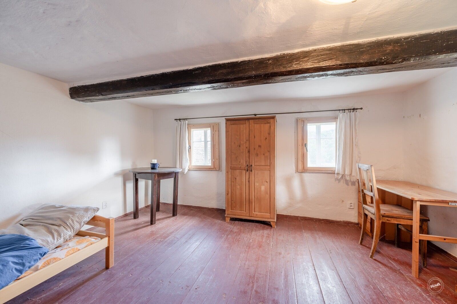 Roubenka, které říkáme jednoduše Tetka. Historická roubená stavba s kamenným základem, která si přes generace uchovala svou krásu i pevnost. V přízemí najdete útulný obývací prostor s kuchyní, koupelnu a menší místnosti; v patře pak dvě ložnice a skladovací prostory. Pod střechou se rozkládá velká půda – kdysi využívaná ke skladování chmele. Přestože nese stopy času, během posledních let prošla řadou oprav, takže dnes spojuje atmosféru historického domu s pohodlím moderního bydlení.
