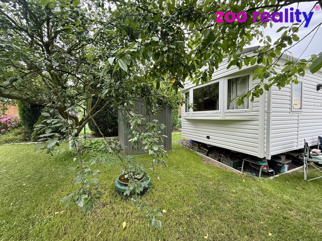 Prodej zahrady 365 m2 s mobilním domem 33 m2. Vhodné pro rybáře.