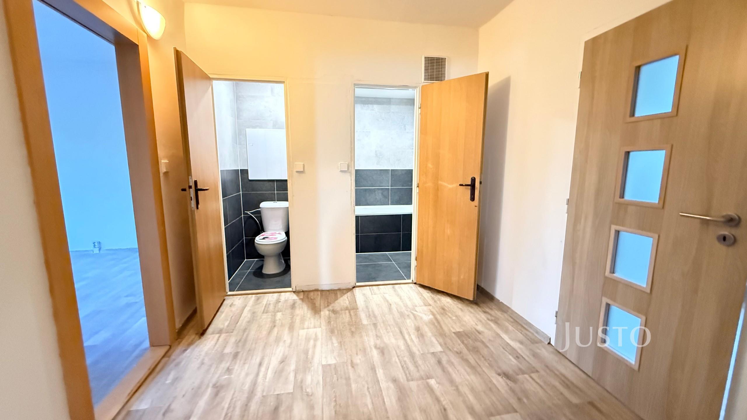 Byt je v osobním vlastnictví, pronajímá se jako nevybavený. Dispozice nabízí samostatnou kuchyň s plynovým sporákem, prostorný obývací pokoj s přístupem na lodžii a dva další pokoje. K bytu náleží sklep, což poskytuje dostatek úložného prostoru. V koupelně najdete vanu a umyvadlo, WC je samostatné. Podlahy jsou řešeny vkusným linoleem v imitaci dřeva. V bytě je dostatek denního světla díky velkým oknům a orientaci obytných místností.