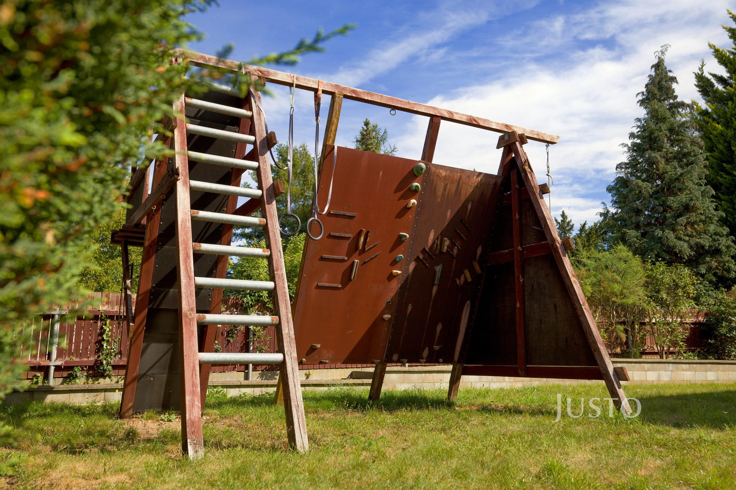 • Přízemí: zádveří, velký obývací pokoj s krbem a přímým vstupem na terasu a zahradu, kuchyně s jídelnou, koupelna s WC.