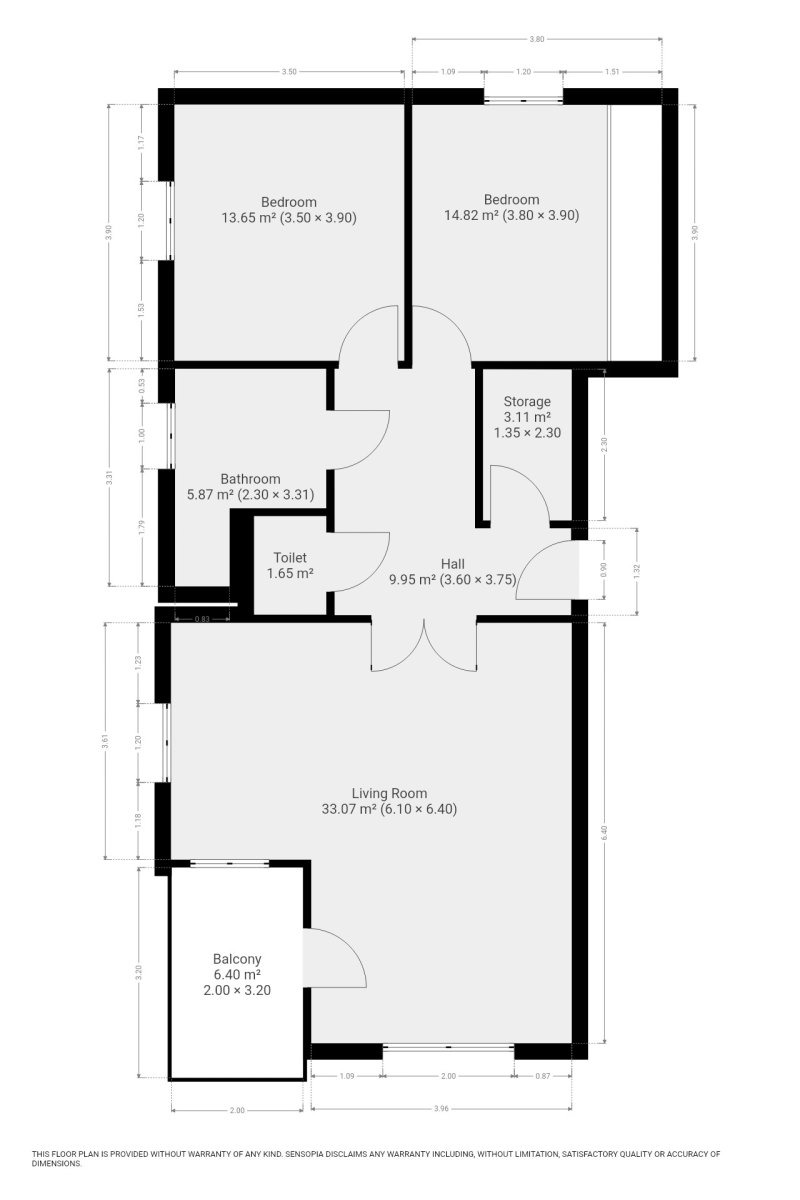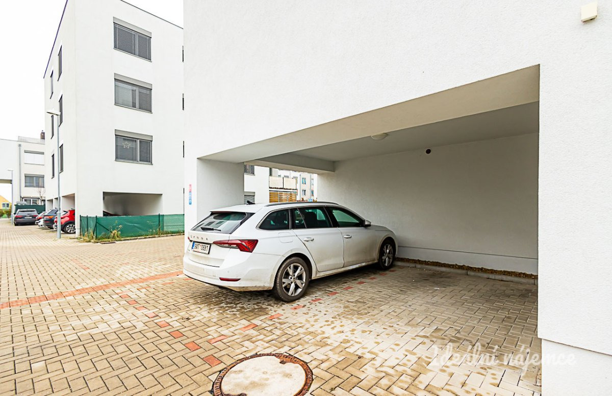 Byt je nabízen nezařízený, což dává možnost uzpůsobit si interiér podle vlastního vkusu. Kuchyně je vybavena lednicí s mrazákem, elektrickou troubou, indukční varnou deskou, digestoří, úložným prostorem a praktickou pracovní plochou s barovým posezením. Obývací část disponuje rozměrným a světlým prostorem, který lze vybavit jak sedací soupravou, tak i například jídelním koutem. K dispozici jsou dva samostatné pokoje, které mohou sloužit jako ložnice, dětský pokoj či pracovna. Jeden z pokojů je zařízen praktickou vestavěnou skříní. Koupelna disponuje sprchovým koutem i vanou, umyvadlem, toaleta je umístěna samostatně.