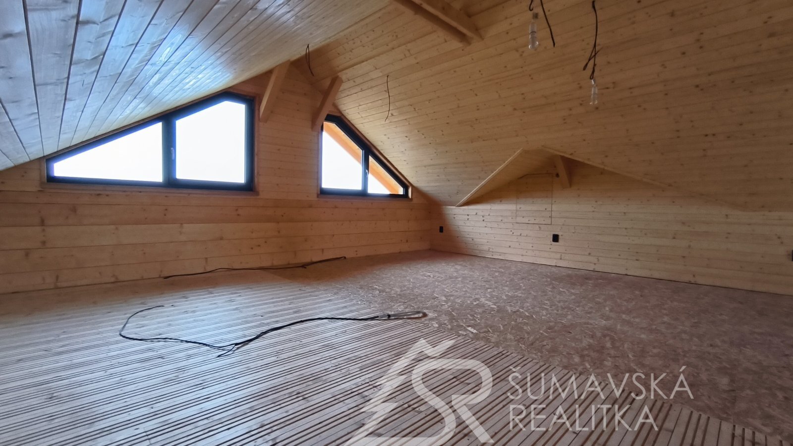 NOVOSTAVBA S GARÁŽÍ - VÝJIMEČNĚ PŘÍVĚTIVÉ MÍSTO NA ÚBOČÍ JAVORNÍKU–ROHANOV, CENTRÁLNÍ ŠUMAVA