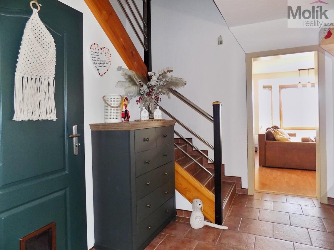 Hledáte rodinný dům v nádherném prostředí se zastřešeným posezením, zapuštěným bazénem a pozemkem o celkové ploše 1140 m2 ? Nabízíme Vám k prodeji nádherný rodinný dům o obytné ploše 190 m2. Nemovitost se nachází na samém konci slepé ulice v klidné a vyhledávané lokalitě rodinných domů a disponuje nádherným výhledem do krajiny. Nabízí komfortní bydlení s rozlehlým pozemkem se zapuštěným bazénem a zastřešenou terasou s možností úplného uzavření venkovní žaluzií, na kterou se vstupuje z obývacího pokoje. Dům samotný byl zkolaudován v roce 2001 a disponuje nízkými náklady na bydlení díky vytápění krbovými kamny a možností temperovat a ohřívat vodu pomocí kondenzačního kotle, který využívá plyn ze zásobníku na zahradě. Do domu je zavedena elektřina 220 i 380V, pitná voda, kanalizace a vysokorychlostní internet. V přízemí domu se nachází vstupní chodba, vlevo dále koupelna se sprchovým koutem, toaleta a vstup do garáže, která je připravena na případnou přestavbu v obytnou místnost. V pravé části je kuchyně s kuchyňskou linkou vybavenou vestavěnou plynovou varnou deskou, el. troubou, myčkou, vestavěnou lednicí s mrazákem, digestoří a mikrovlnnou troubou. Dále je zde jídelna a prostorný obývací pokoj s krásným výhledem a se vstupem na terasu a zahradu. V prvním patře se nachází ložnice, dětský pokoj, pokoj pro hosty, pracovna a koupelna s rohovou vanou, sprchovým koutem a toaletou. Nemovitost disponuje pochozí půdou. V pokojích v prvním patře a obývacím pokoji je plovoucí podlaha. V chodbě, kuchyni, koupelnách, WC a na schodech je dlažba. Střecha je z pálených tašek, okna s venkovními žaluziemi a vstupní dveře dřevěná. Vjezd na pozemek z ulice bránou na DO, mimo garáž v domě je na pozemku ještě dvojgaráž a v přístavku u domu je prostor k uskladnění zahradní techniky, nářadí a kol. Na slunné a rozlehlé zahradě si každý najde místo k odpočinku, koupání, slunění a posezení s přáteli u ohniště nebo na terase, kam je vyveden i TV kabel. Na zahradě se nachází studna a současně je po ní rozvedena voda z domu, rozvedena elektřina a venkovní osvětlení. Vzhledem k lokalitě, stavu nemovitosti, nízkým nákladům na bydlení se jedná o ideální bydlení pro rodinu. V případě zájmu Vám zajistíme velmi výhodné financování této nemovitosti naším hypotéčním specialistou. Pro více informací nebo domluvení prohlídky volejte makléři 7 dní v týdnu.