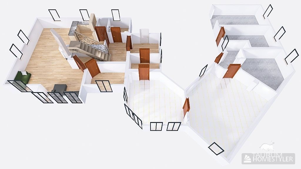 Novější část je o výměře 92 m² a dispozici 2+1, kde koupelna a kuchyň jsou připraveny k finalizaci dle představ budoucího majitele. Tato část může sloužit nejen jako samostatné bydlení pro členy rodiny, ale např. pro pronájem nebo jako kanceláře a díky samostatnému vstupu nenaruší soukromí hlavní části domu.