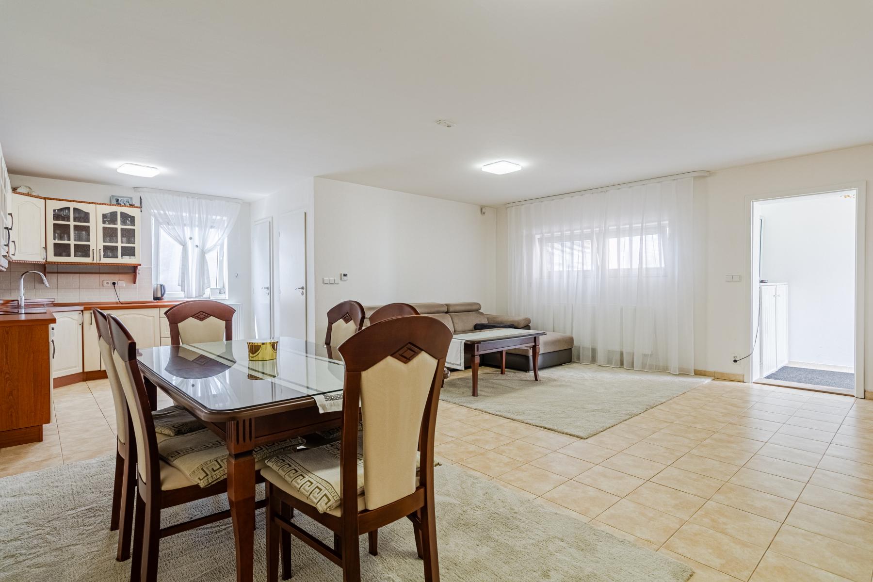 Dovoluji si vám nabídnout k pronájmu novostavbu rodinného domu o dispozicích 3+1. Dům se nachází v blízkosti Prahy 9 Čakovice, v obci Veleň Mírovice. Umístění domu ve slepé ulici zajišťuje dostatek klidu. V přízemí je obývací pokoj s kuchyní, toaleta, zádveří. V patře jsou dva další pokoje a prostorná koupelna. Celková obytná plocha domu je 95m2. Dům je pronajímám s částečným vybavením. Vytápění domu je řešené plynovým kotlem napojeným na ústřední topení. Nájemné je výši 30.000,- + platby za energie 5.000,-. Vratná kauce 30.000,-, provize RK 30.000,-. Nastěhování od 9.3.2026. Není možné zřídit trvalé bydliště.