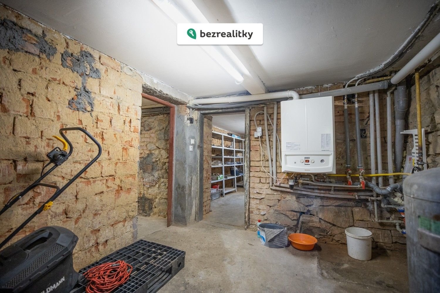 Součástí domu je rozsáhlý sklep, který byl dlouhodobě plně funkční a velmi dobře udržovaný. Poskytuje prostor pro dílnu, sklad, hobby činnost nebo domácí fitness. Stropy jsou nově zatepleny. Na pozemku se dále nacházejí dvě pergoly, kůlna a parkovací místa pro tři auta.