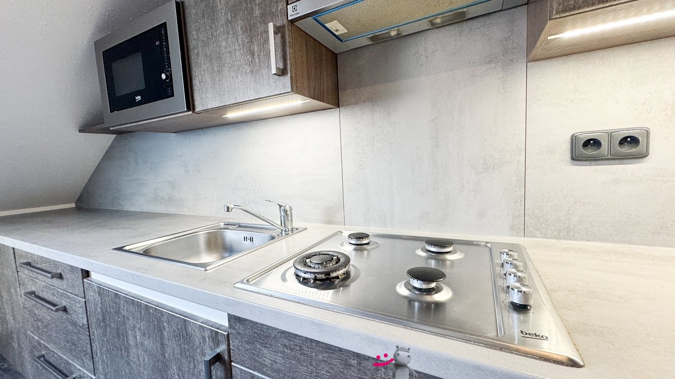 Třípokojový podkrovní byt s kuchyní, obývacím pokojem, ložnicí a dětským pokojem nabízí možnost prostorného, ale zároveň útulného bydlení. Kompletní rekonstrukce bytu nabízí moderní vybavení, nové rozvody vody, elektřiny, obkladů, kuchyňskou linku na zakázku od truhláře. Okna jsou nová, dřevěná. Byt je prakticky řešen s dostatkem skladovacího prostoru včetně komory, šatny, špajzu a vestavěných skříní. Zároveň je možné využít veškerý potenciál bytu a přizpůsobit ho dle vlastních potřeb a představ. Světlé interiéry a funkční dispozice dávají bytu příjemný prostor k bydlení ale i relaxaci.