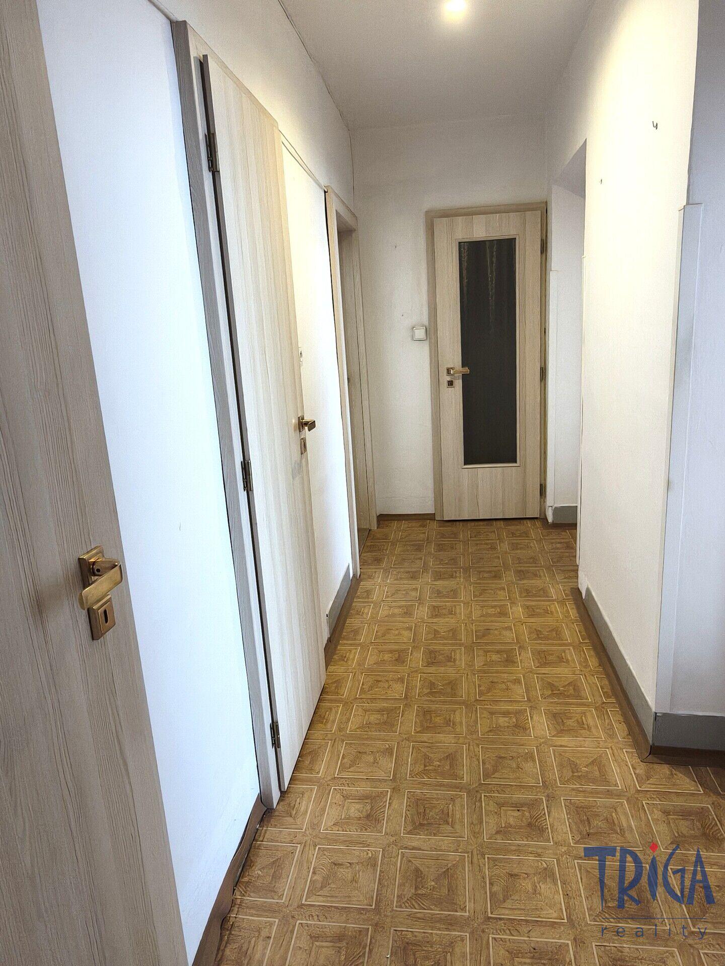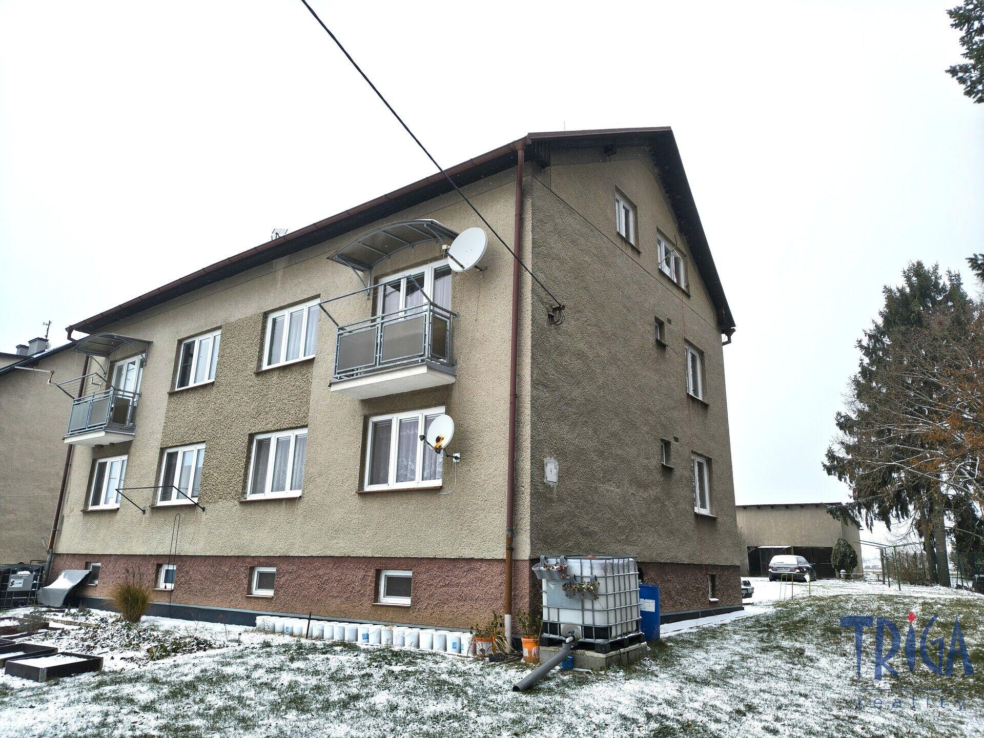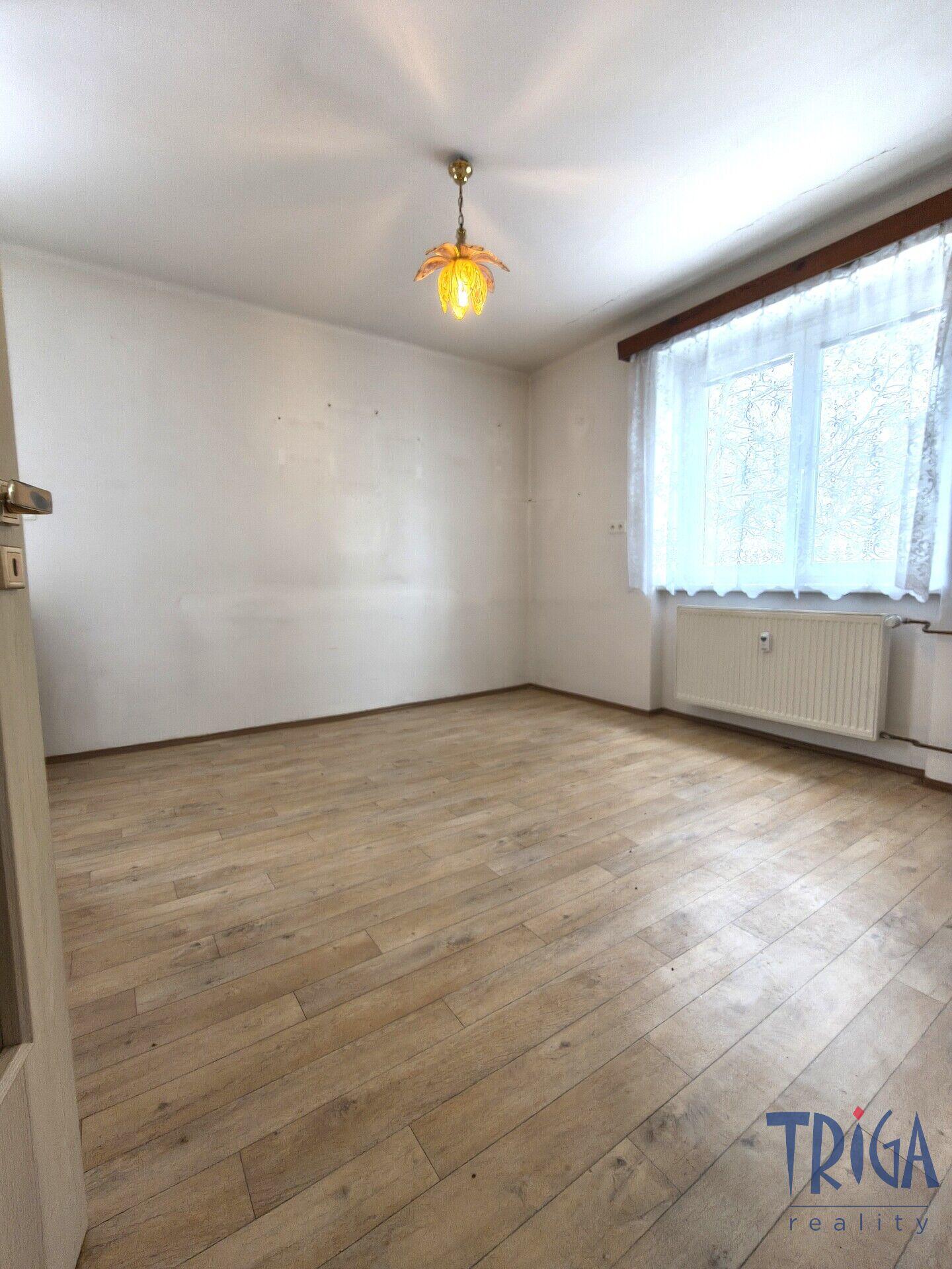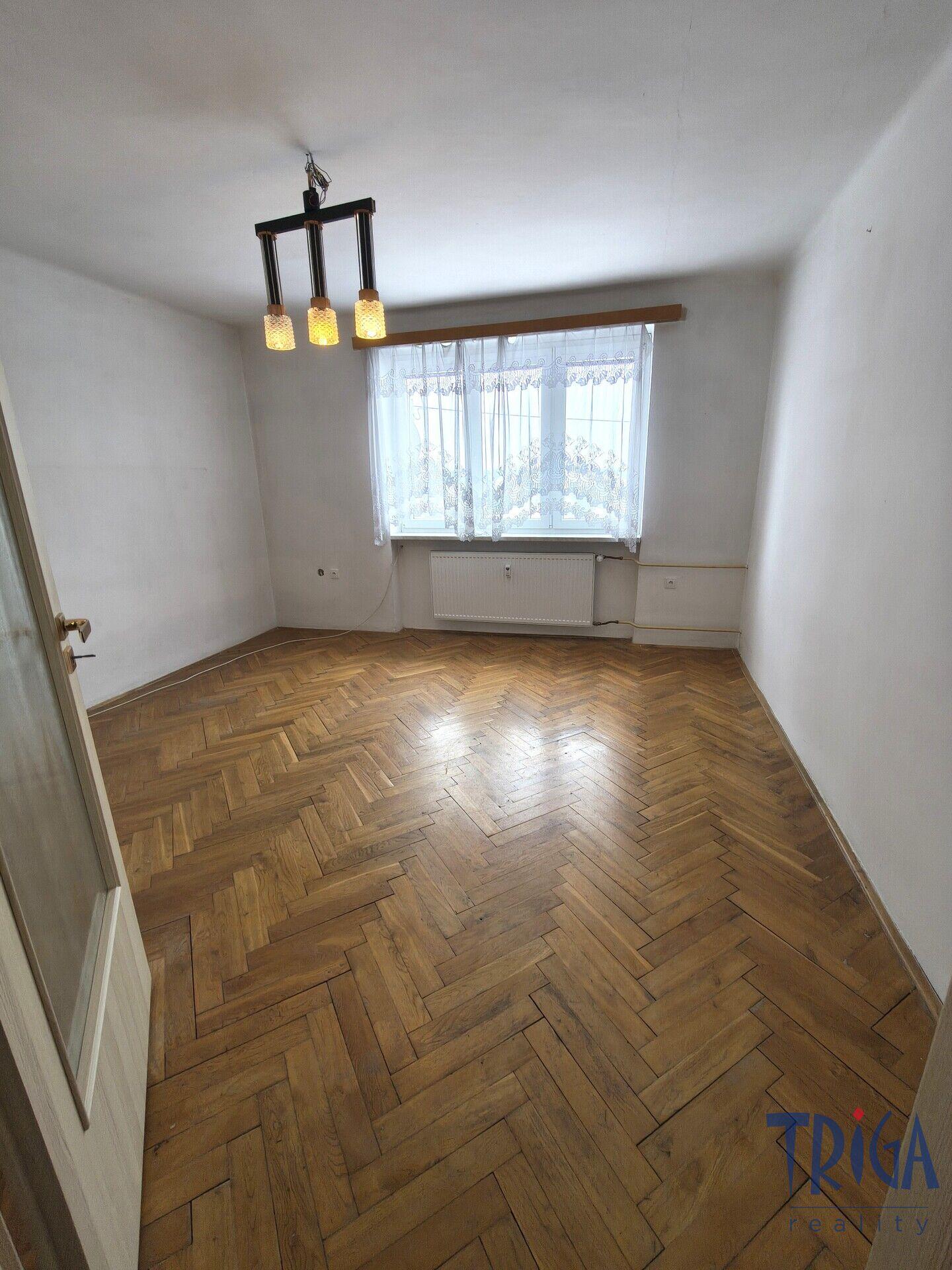 Byt se nachází ve zvýšeném přízemí zděného domu a nabízí celkovou plochu 72 m² včetně sklepa.