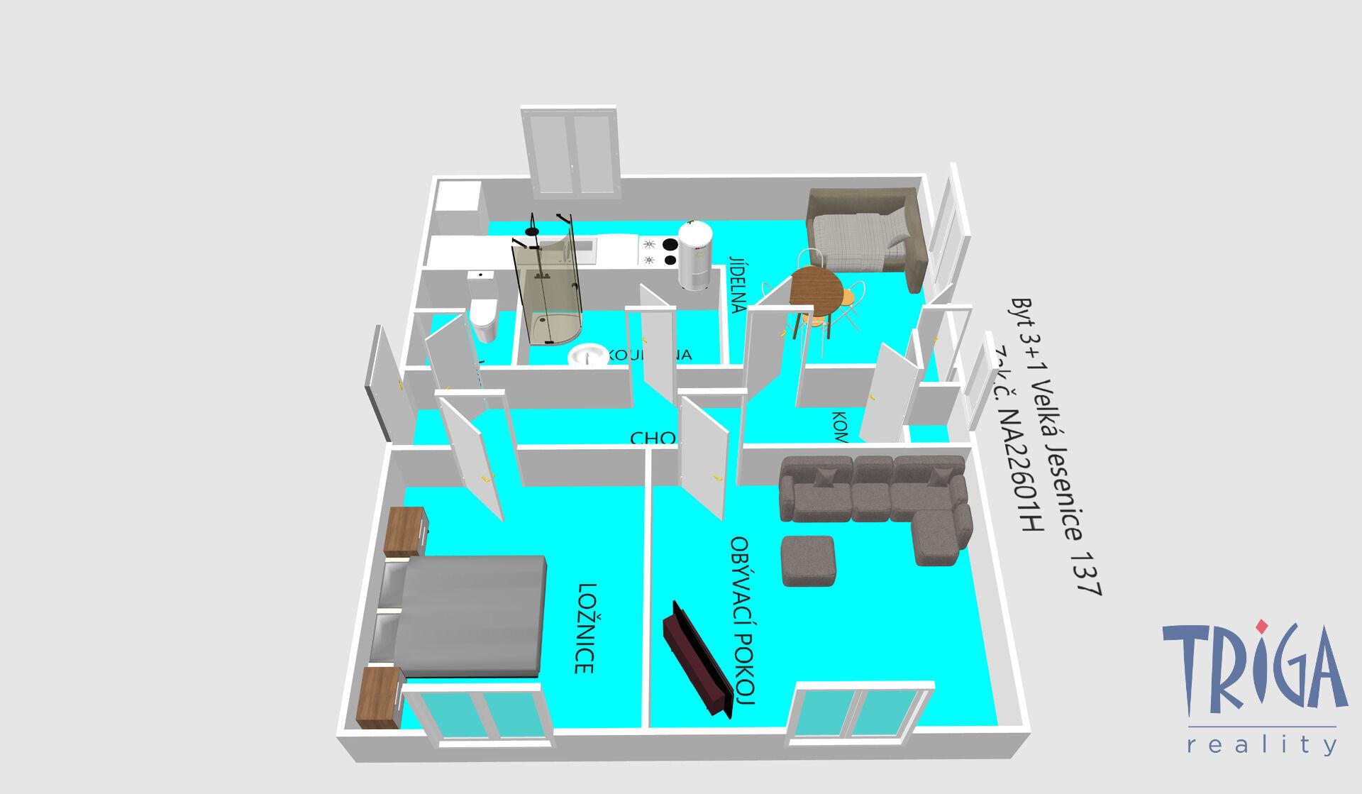 Nabízíme ke koupi světlý prostorný byt 3+kk s komorou v klidné obci Velká Jesenice, jen pár minut od České Skalice.