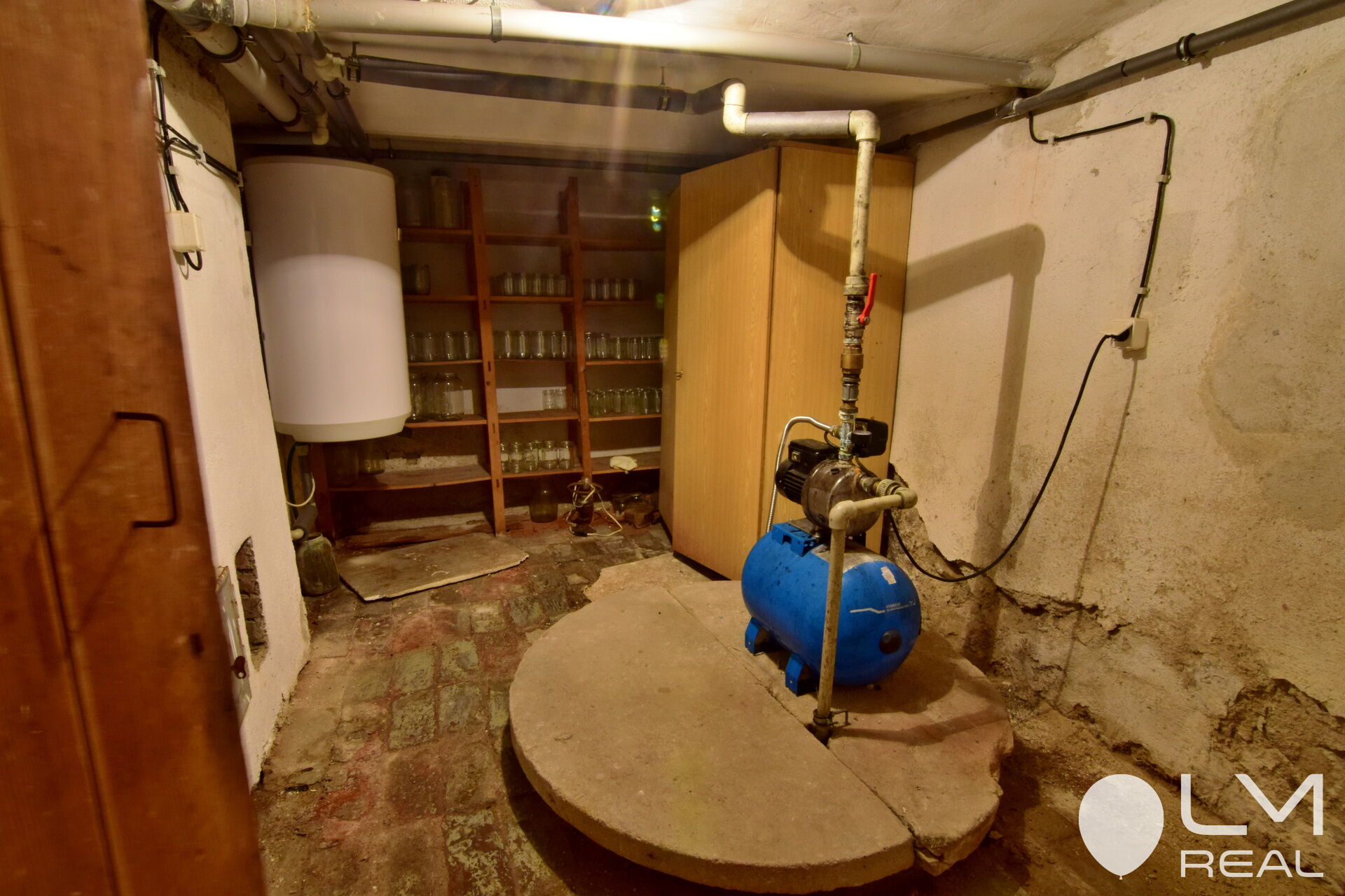 Sklep 38,46 m2: vodárna s vrtanou studnou hl. 7,2m, s čerpadlem, technická místnost s plynovým kotlem, sklad na ovoce a zeleninu.