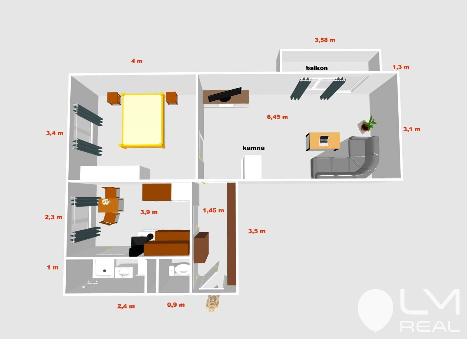 | Dispozice/podlahová plocha: | 2+1/56 m² |
