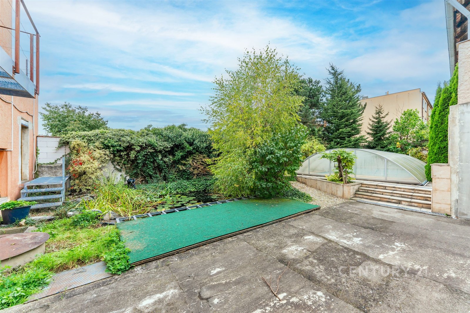 Zahrada nabízí příjemné soukromí a perfektní místo pro odpočinek. Najdete zde přírodní biotop i krytý bazén s protiproudem – kombinaci, která spojuje estetiku s funkčností a poskytuje ideální prostor pro relax po náročném dni.
