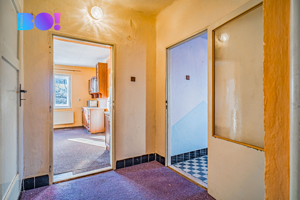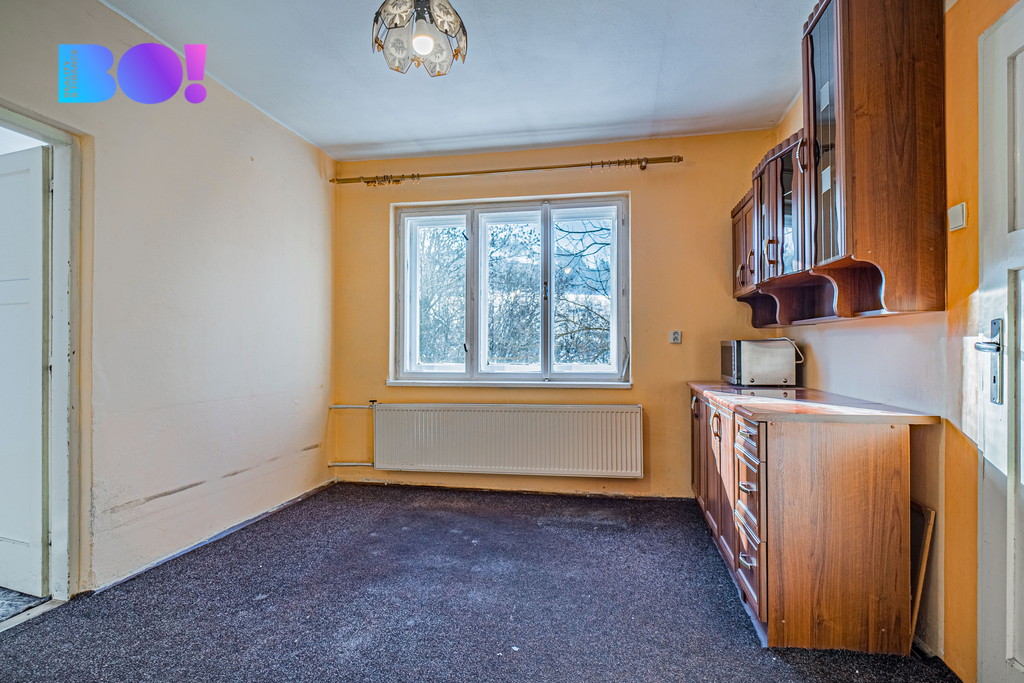 Po pravé straně se otevírá kuchyně, která má atmosféru domova, jaký si pamatujeme z prázdnin u babičky. Odtud vede vstup do koupelny, spíže a také průchod do obývacího pokoje – prostorného, připraveného na společné večeře, povídání i tiché večery u knihy. Navazuje na něj ještě jeden pokoj, který může sloužit jako ložnice nebo další obytný prostor.