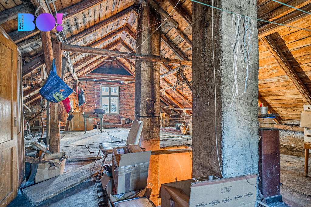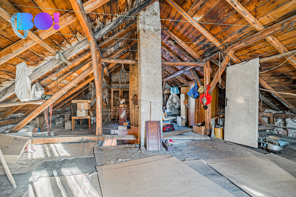 Ze středové chodby se také dostanete na rozsáhlou půdu, která po rekonstrukci slibuje tolik možností – od podkrovního apartmánu po velký ateliér, místo pro relaxaci nebo další pokoje. Stejnou chodbou pak vstoupíte i do sklepa, který nabízí štědrý úložný prostor nebo možnost vybudovat dílnu.