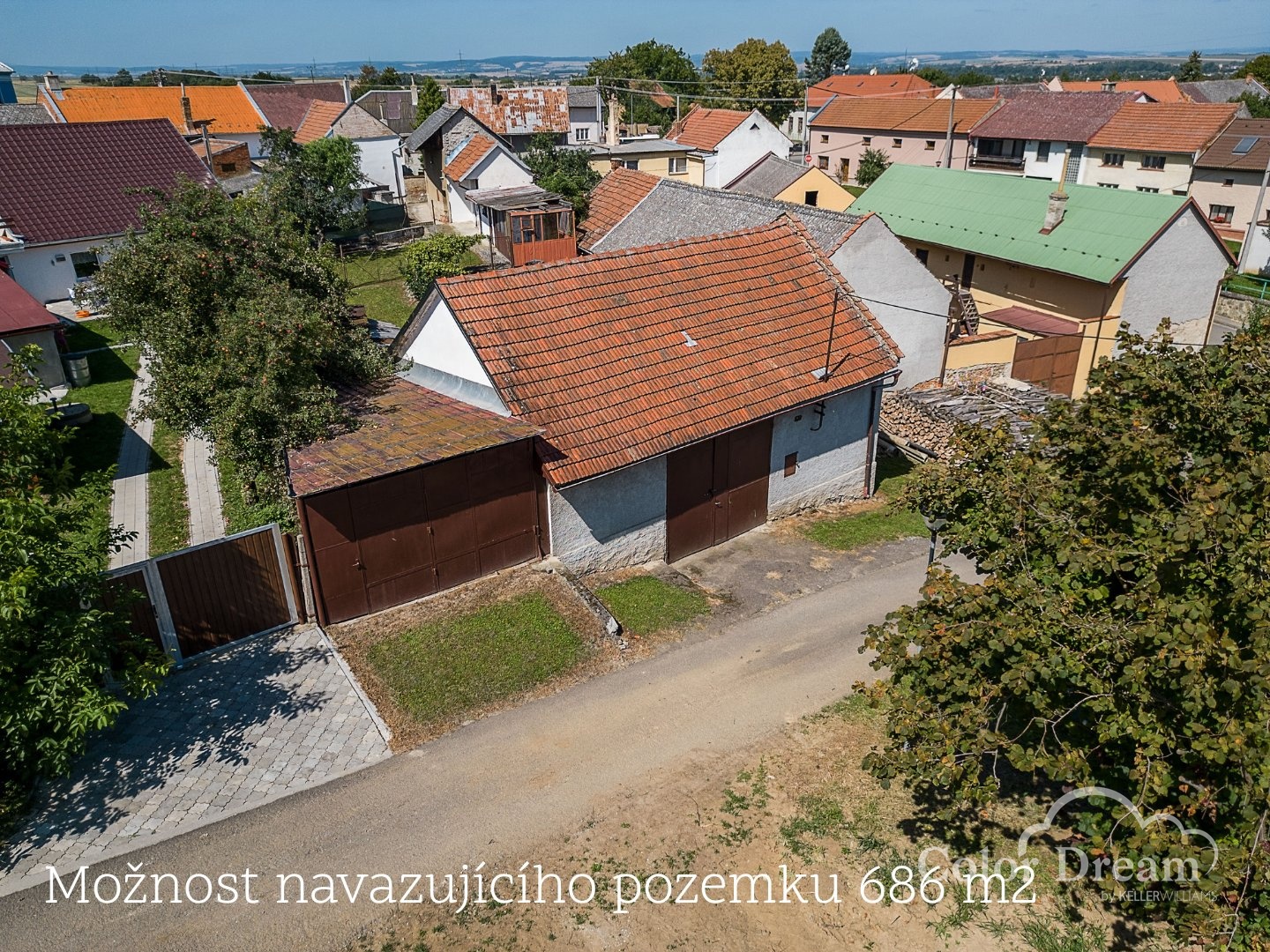 Lze přikoupit i zadní část pozemku, kde se nachází objekt s dalším číslem popisným, zahrada, chlév a holubník, sklep a stodola. Tento navazující pozemek má samostatný přístup i ze zadní obecní cesty. Objekt s č.p. má potenciál pro vybudování další bytové jednotky, ateliéru nebo zázemí pro drobné podnikání, dá se uvažovat i o stavbě místo stodoly.
