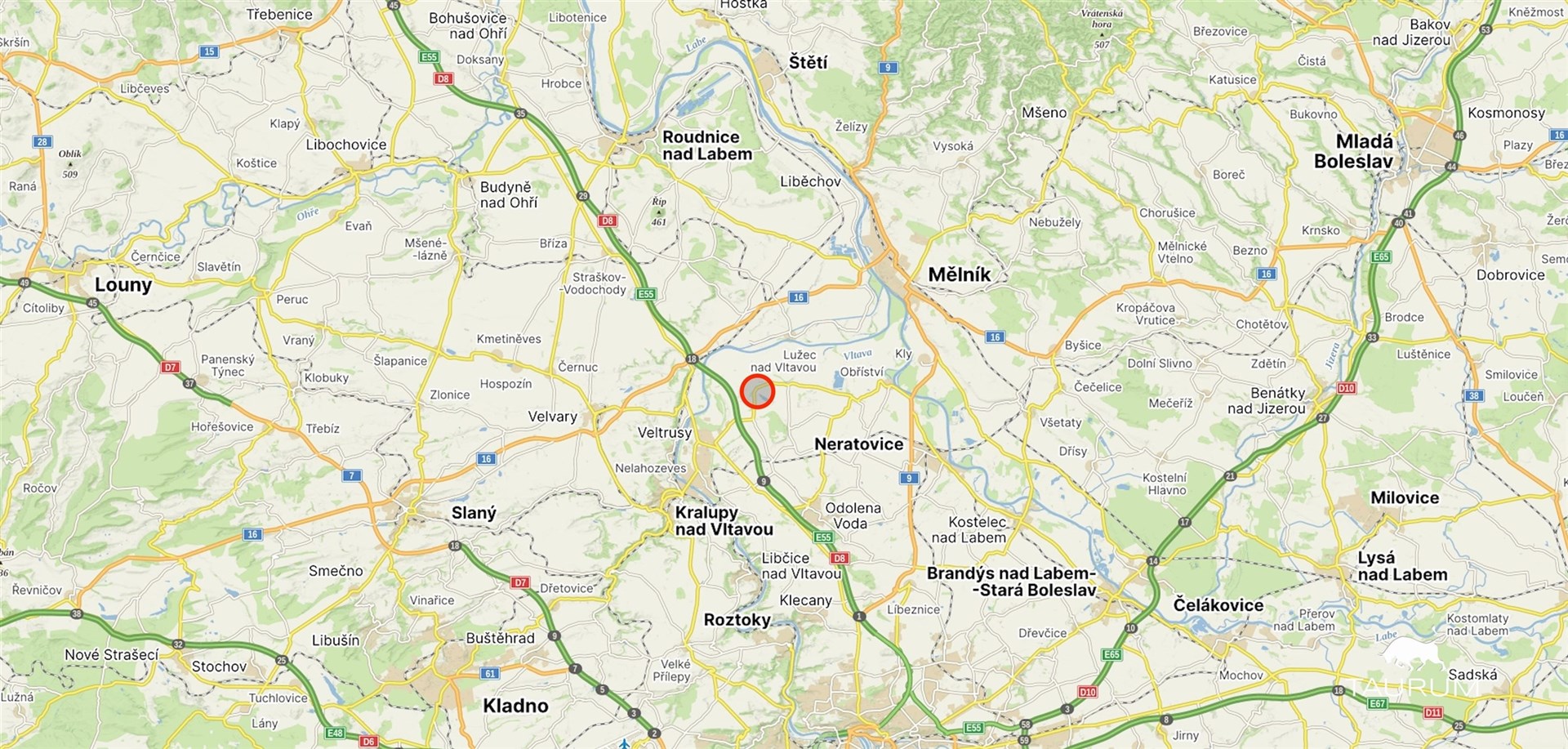 Areál o celkové ploše pozemku 12.027 m2 je přístupný po asfaltové silnici přibližně 10 minut jízdy od Kralup nad Vltavou a 14 minut jízdy od okraje Prahy. Pozemek areálu je kompletně rovinatý, zpevněný betonem a celý oplocený s otevíratelnou vjezdovou bránou. Kolem areálu jsou louky a porost se stromy.