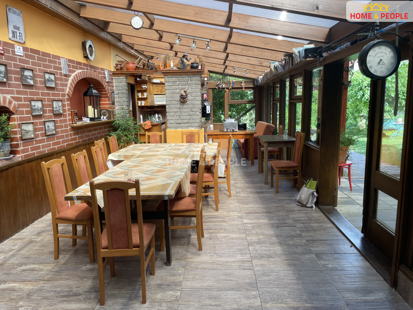 Součástí penzionu je také restaurace s barem, kuchyní a sociálním zařízením v přízemí. Zastřešená terasa poskytuje kryté venkovní posezení s výhledem do relax poskytující kvetoucí udržované zahrady. V 1. NP se nacházejí další pokoje.