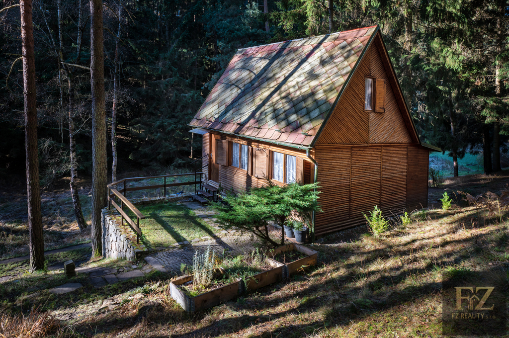 Nabízíme k prodeji jedinečnou, útulnou chatu s terasou, která se nachází v oblíbené chatařské oblasti u obce Vrábče, jen pár minut od Českých Budějovic. Jedná se o podsklepenou dřevěnou chatu o užitné ploše 44 m² se zděným základem, umístěnou u rybníka uprostřed lesa.