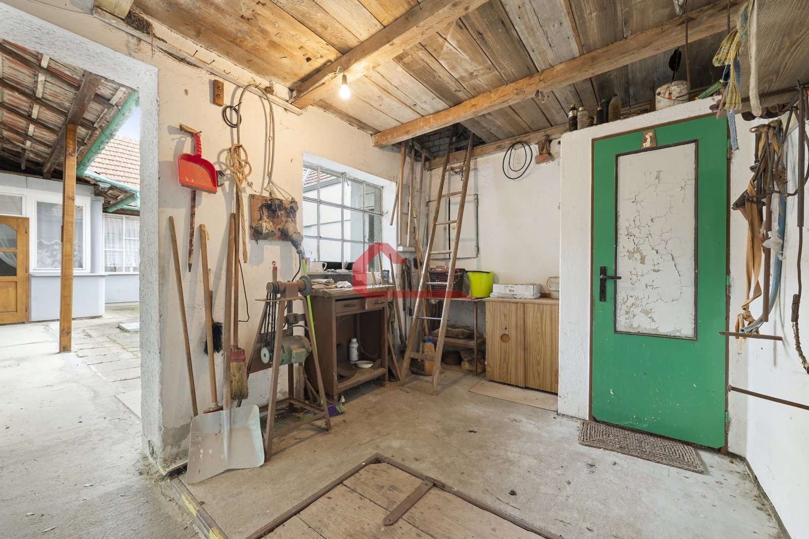 Jedná se o rodinný dům s příjemnou verandou, průjezdem, uzavřeným dvorem, ve kterém se nachází nejen dílna, sklad a menší sklep, ale i navazující hospodářská stavení a kus zahrádky.
