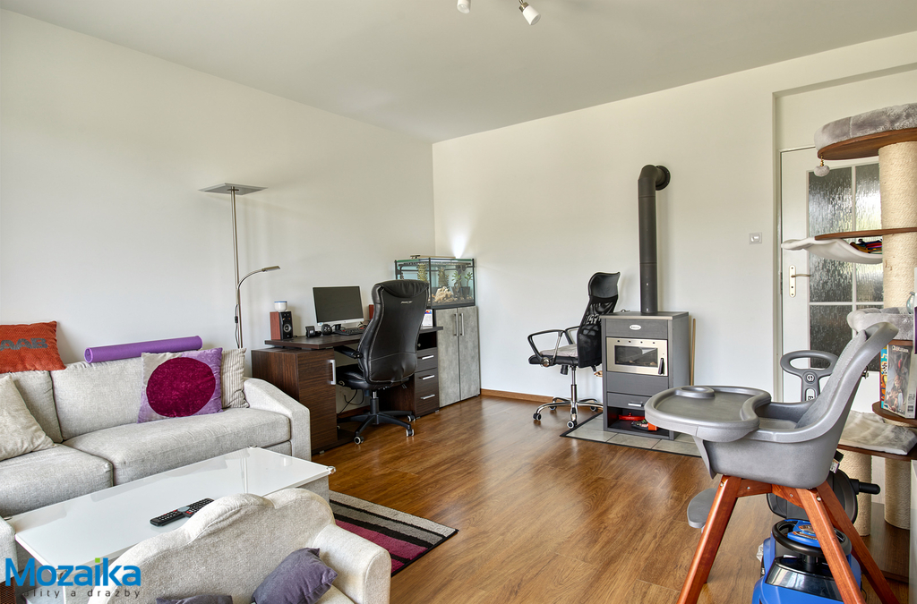 Tento byt prošel před několika lety částečnou rekonstrukcí a je se ve velmi dobrém stavu, připraveném pro okamžité nastěhování. Všechna okna jsou plastová, což zajišťuje tepelnou izolaci a úsporu energií. Koupelna je vybavena vanou a umyvadlem. Vytápění je řešeno prakticky pomocí ústředního topení s kotlem na elektřinu, přičemž ohřev vody zajišťuje bojler. V obývacím pokoji najdete také krbová kamna s výměníkem, která vytvoří příjemnou atmosféru zejména v chladných zimních večerech.