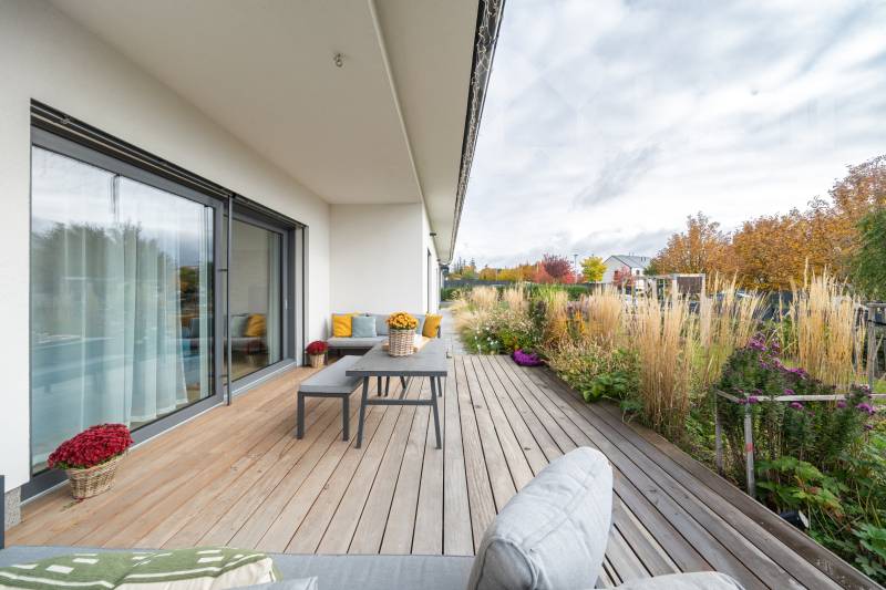 V neposlední řadě je nutno také zmínit nádhernou, vzrostlou zahradu, která je orientovaná na jihovýchod a byla navržena a inspirovaná tématem "Žijte ve své zahradě" podle renomovaného, zahradního architekta Ferdinanda Lefflera.