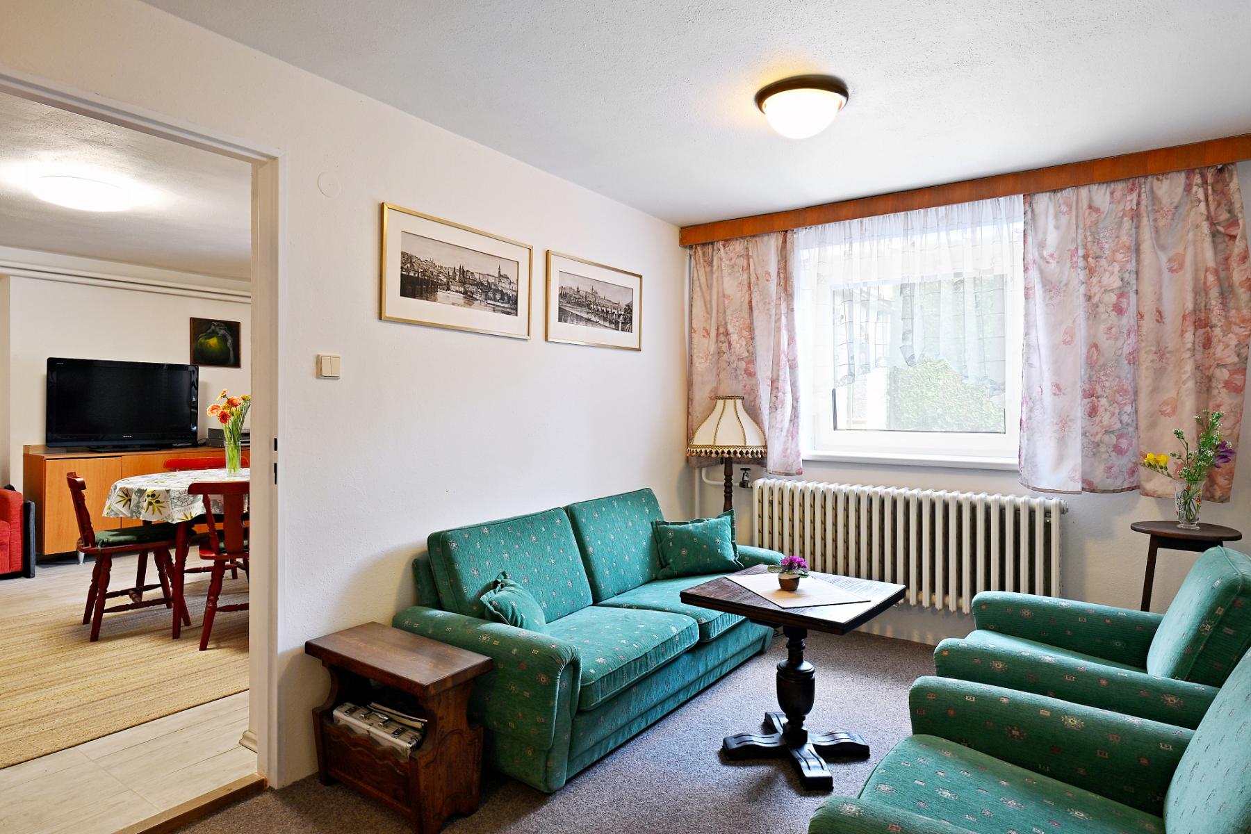 Dům disponuje celkovou užitnou plochou 180 m2 a je rozdělen do dvou plnohodnotných a plně vybavených bytových jednotek. Hlavní obytná část nabízí světlý, otevřený prostor propojující obývací pokoj s moderním kuchyňským koutem, z něhož se vstupuje na prostornou terasu s krásným výhledem do zeleně. Tato úroveň dále zahrnuje prostornou ložnici, dva samostatné pokoje, koupelnu a oddělenou toaletu. Půdní prostor navíc umožňuje budoucí rozšíření obytné plochy formou vestavby dle individuálních představ nového majitele.