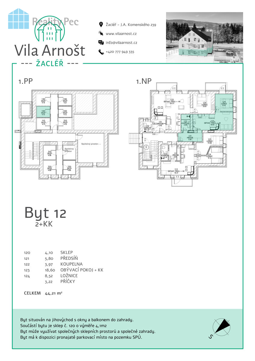 | Dispozice/podlahová plocha: | 2+kk/44 m² |